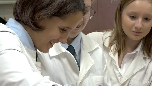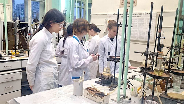 15 и 22 октября на кафедре общей и неорганической химии учащиеся 9-х классов познакомились с устройством химической лаборатории, обсудили назначение лабораторного оборудования, узнали о разнообразии химической посуды и её предназначении, ознакомились с техникой безопасности при работе в лаборатории. После обсуждения теоретических основ очистки и концентрирования неорганических веществ, учащиеся успешно справились с первой лабораторной работой. Был рассмотрен процесс получения и очистки кристаллического иода возгонкой. Фильтрованием и перекристаллизацией очищен медный купорос от примесей, получены и сконцентрированы бром и иод из водных растворов с помощью жидкостной экстракции. Организовали и провели занятие профессор кафедры Черкасов Д.Г и магистрант Зубарев К.Е. совместно с инженерами кафедры Меняйло И. и Решетник И.. Помогали им студенты 1 курса Института химии СГУ.