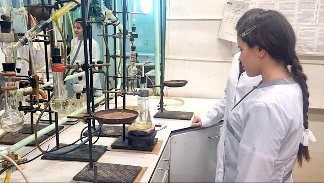 На занятии 18 октября юные химики 11-х классов на кафедре органической и биоорганической химии узнали, какая химическая посуда присутствует в арсенале химика-органика. Колба Бунзена, воронка Бюхнера, фильтр Шотта, обратный холодильник Либиха стали им знакомы не понаслышке. Ученики самостоятельно провели процесс возгонки и перекристаллизации, перегонки органических растворителей, а также провели идентификацию органических растворителей на рефрактометре. Проводили занятия к.х.н, доцент кафедры Амальчиева О.А. и аспирант кафедры Скляр А.Е.