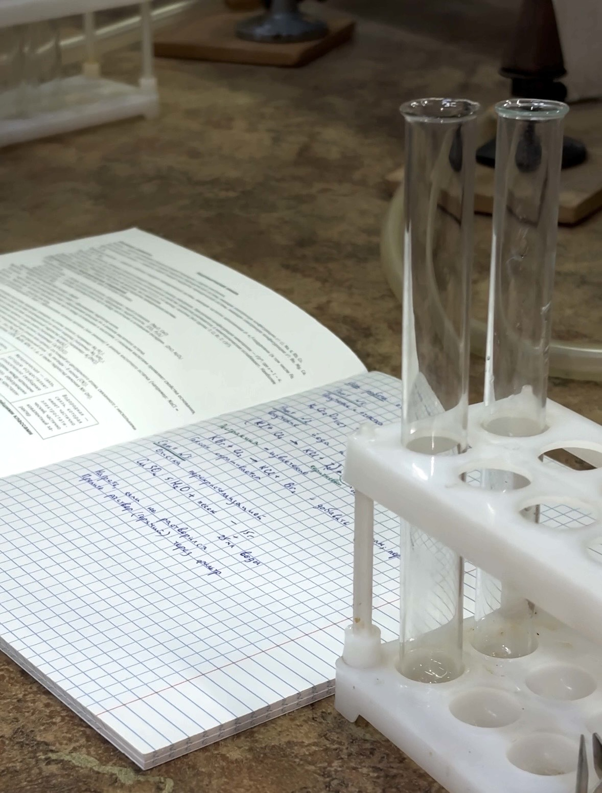 25 октября на кафедре аналитической химии и химической экологии состоялось первое в этом учебном году занятие Школы для учащихся 10-х классов. Юные химики подробно ознакомились с качественными реакциями на различные катионы и анионы, способами выполнения качественных реакций: микрокристаллоскопическим, пробирочными, капельными реакциями, окрашиванием пламени. Учащиеся самостоятельно и с большим интересом выполняли реакции, используемые для обнаружения катионов аммония, натрия, кальция, железа, никеля, сульфат-, хлорид-, нитрат-анионов. Организовали и провели занятие ассистент кафедры аналитической химии и химической экологии, инженер учебной лаборатории аналитической химии Мурсалов Р.К., аспирант 4 года обучения Юрова Е.В., магистрант 2 курса Кетруш Е. и студент 3 курса факультета ФМиЕНД Педагогического института СГУ Саухина Т.