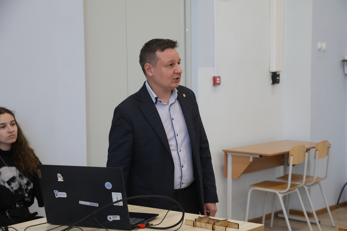 8 октября лекцию о разработке робототехнических систем на основе микроконтроллеров прочитал для старшеклассников заведующий кафедрой динамического моделирования и биомедицинской инженерии А.С. Караваев.
