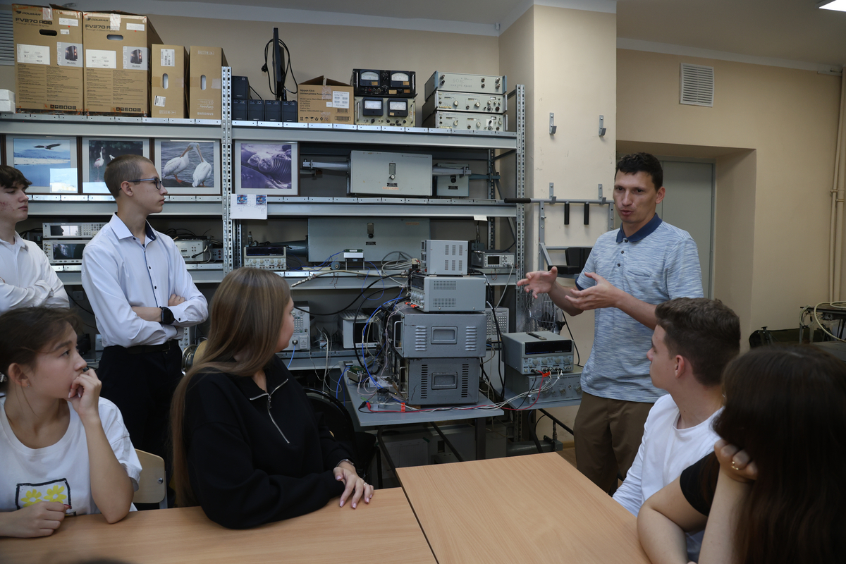 На практической части занятия школьники познакомились с работой программируемых робототехнических комплексов. Десятиклассники увидели технологическое оборудование фаблаба «Цифровые интегративные биоинженерные системы» и других исследовательских площадок Института физики. Участники изучили робототехнические системы, используемые в научно-исследовательских лабораториях университета.
