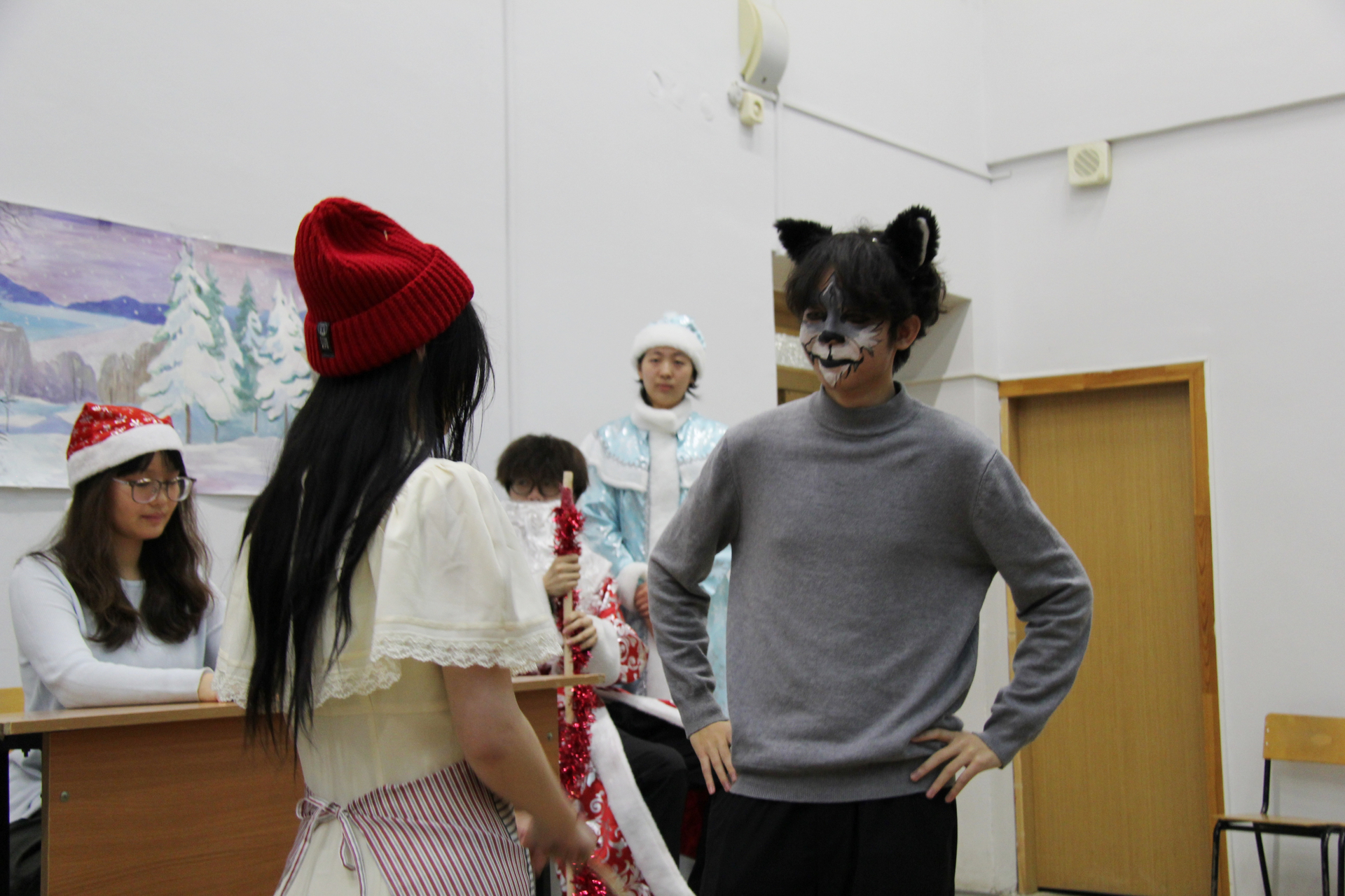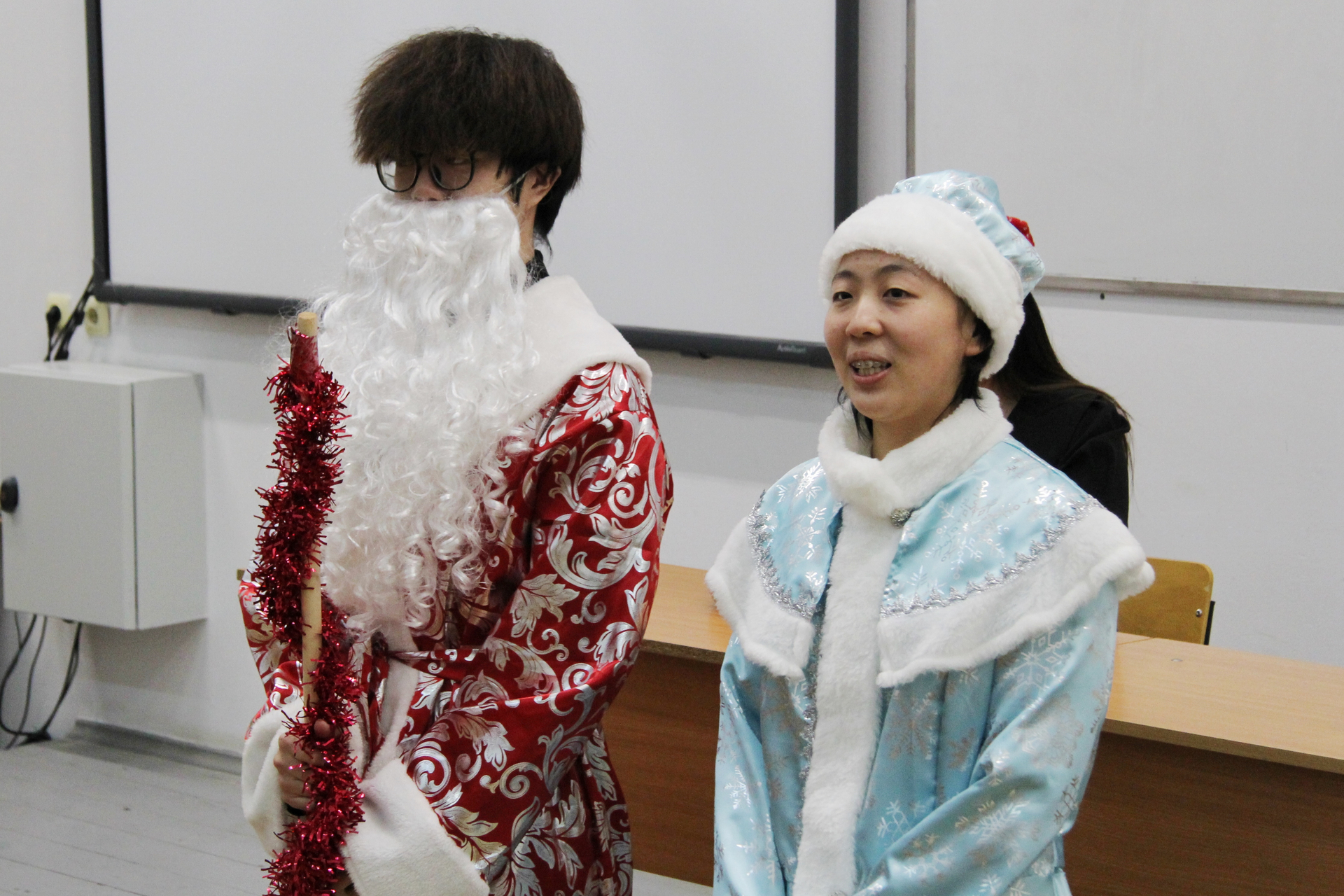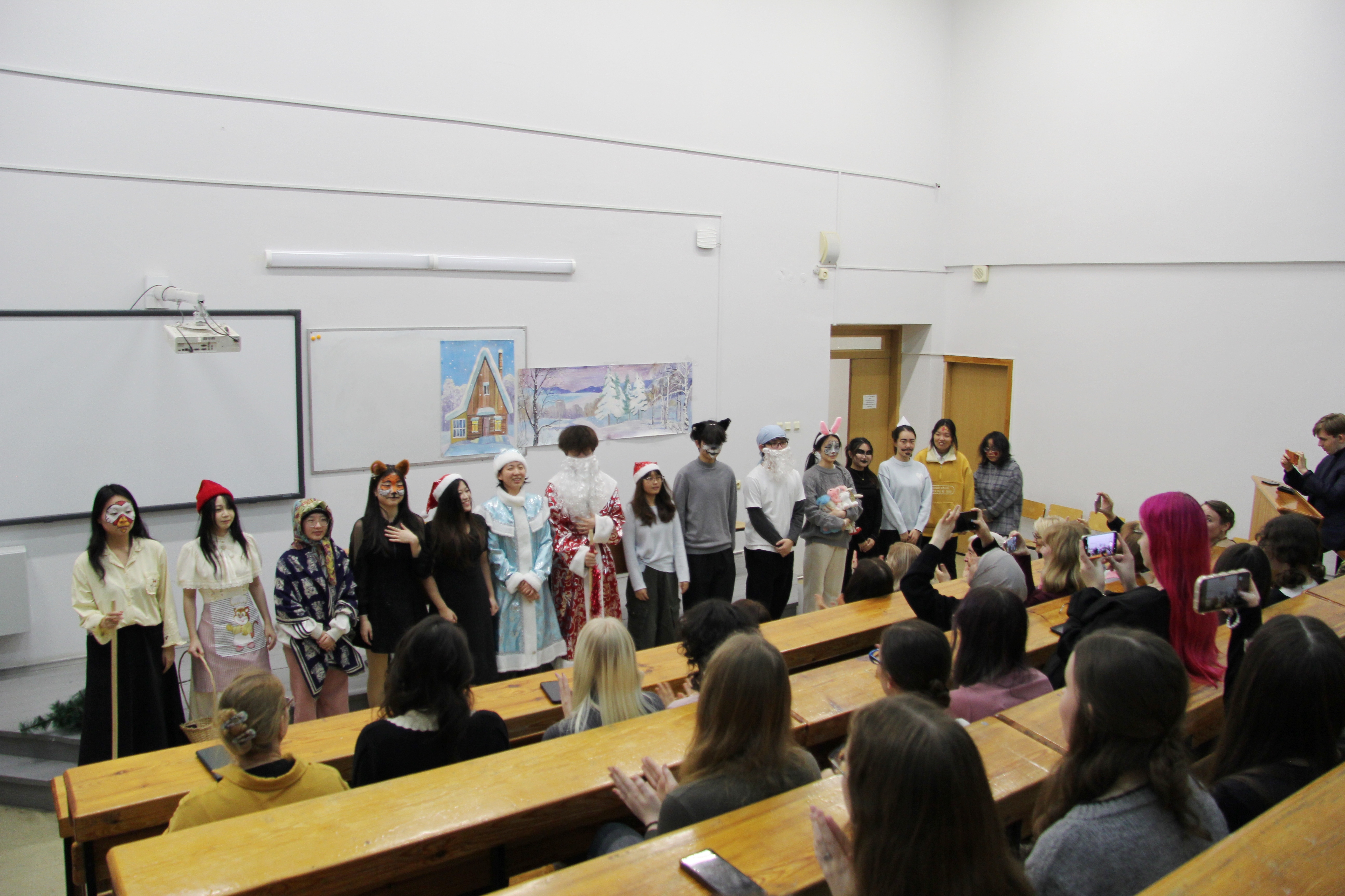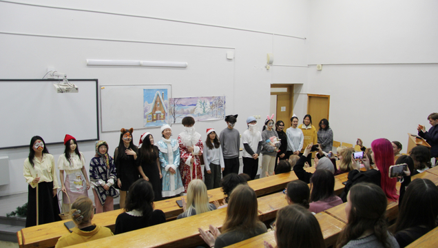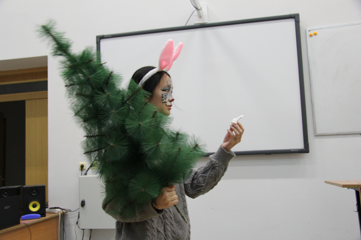 В Институте филологии и журналистики 3 декабря прошёл новогодний спектакль по мотивам русских народных сказок. Его подготовили китайские студенты коммерческого института университета Нанго при Гуандунском университете иностранных языков и торговли КНР, обучающиеся в СГУ в рамках программы студенческого обмена.