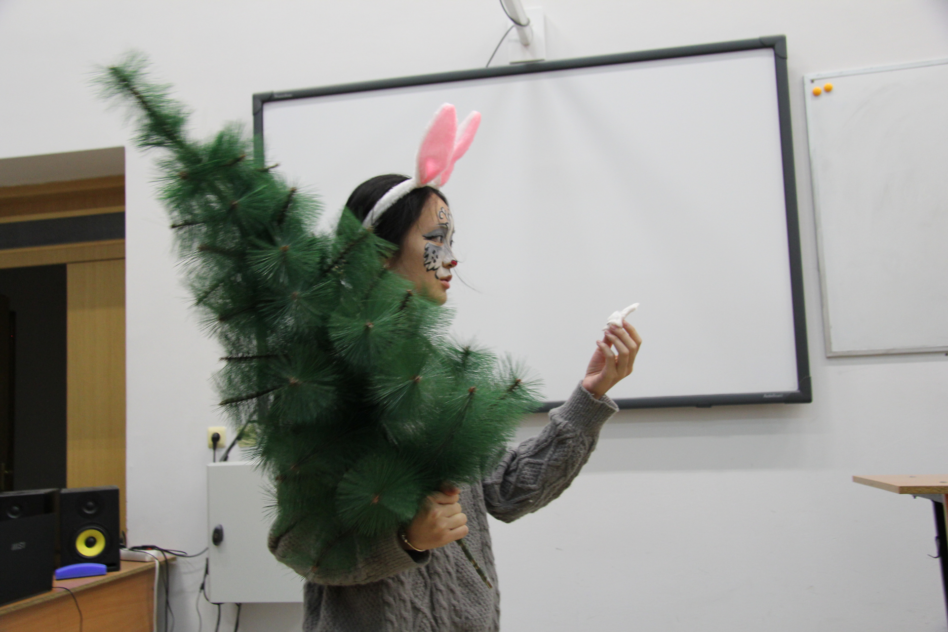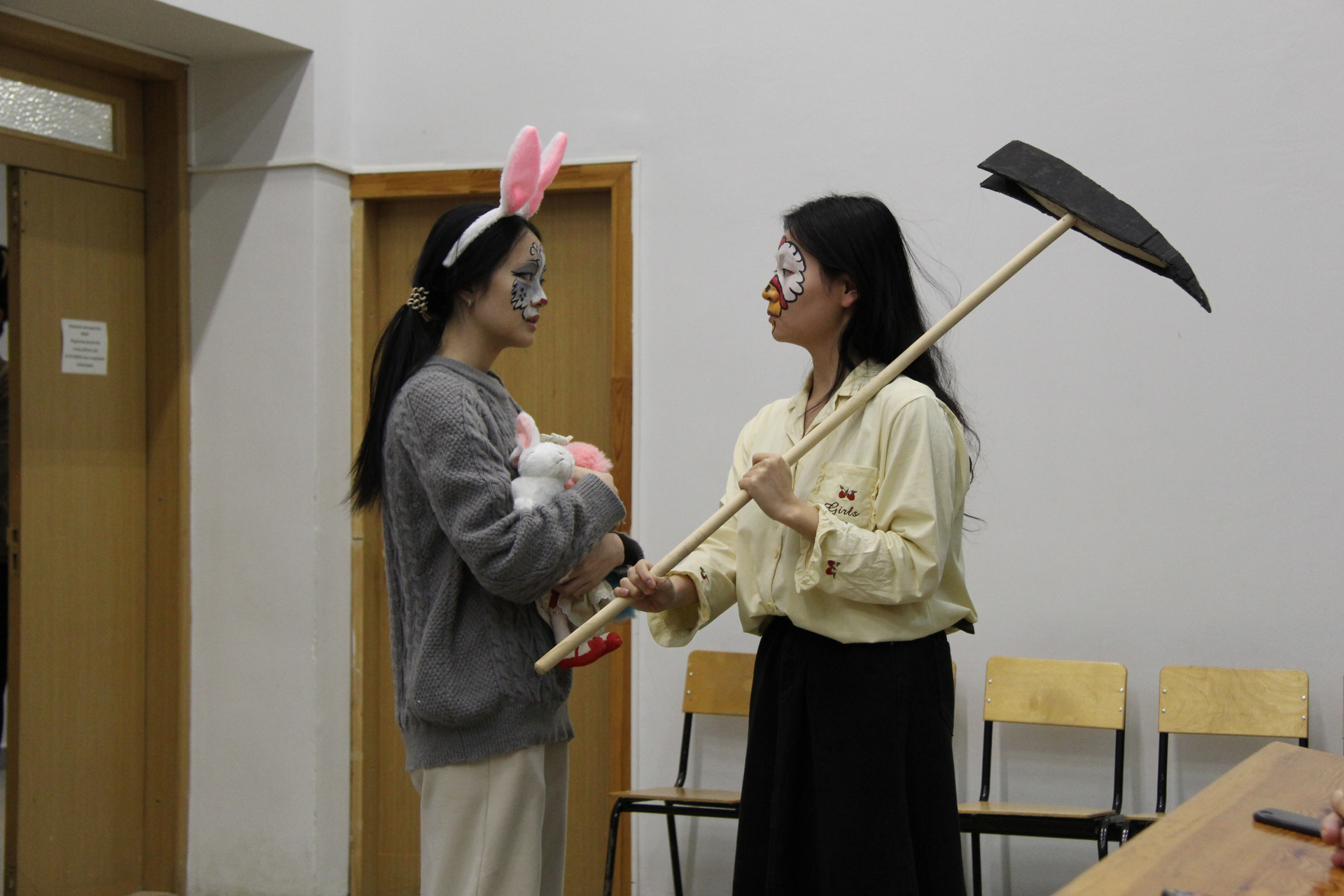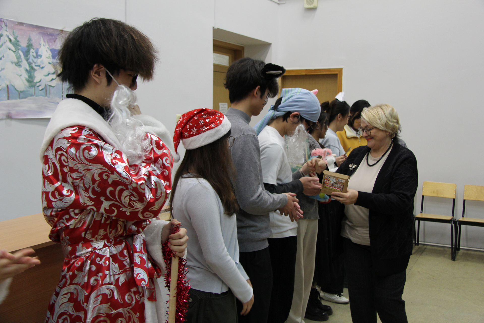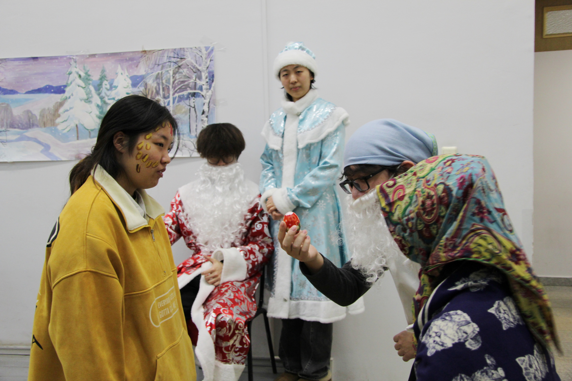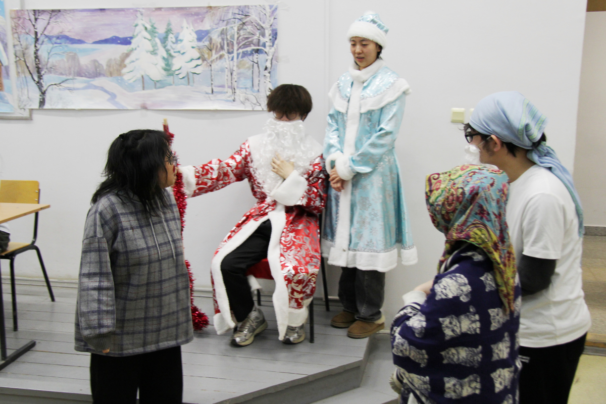 На импровизированной сцене студенты из Китая перевоплотились в сказочных персонажей и исполнили свои роли на русском языке. «Результатом русско-китайских репетиций стала весёлая, добрая фантастическая феерия с участием Деда Мороза и Снегурочки, лисы, волка, курочки Рябы, колобка, зайца, петуха, вороны и других героев. Самым главным результатом работы над спектаклем стало знакомство с русской культурой и крепкая дружба студентов двух стран», – отметила Татьяна Алексеевна.