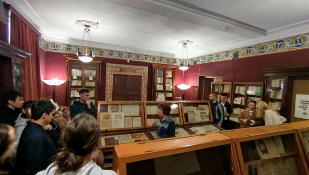 Студенты 171  группы направления обучения «Социальная работа» Социологического факультета СГУ посетили отдел редких книг и рукописей Зональной научной библиотеки имени В.А. Артисевич. На выставке по истории русской книги студенты узнали об особенностях рукописных и старопечатных изданий, о журналах екатерининского, петровского времени и Серебряного века, увидели издания с автографами, познакомились с особенностями формирования фонда отдела редких книг и рукописей, услышали о коллекционерах-дарителях.
