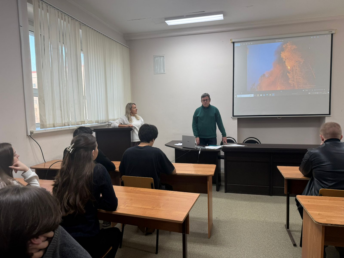 26 ноября 2025 года на юридическом факультете СГУ прошла лекция в формате мастер-класса с руководителем Центра социально-правовых и природоохранных инициатив, кандидатом социологических наук, доцентом, Хвостовым Антоном Александровичем, которую организовала, кандидат политических наук, доцент кафедры уголовного права и криминологии Елисеева С.Н. в рамках дисциплины Экологическое право, для студентов 3 курса направления подготовки «Юриспруденция».