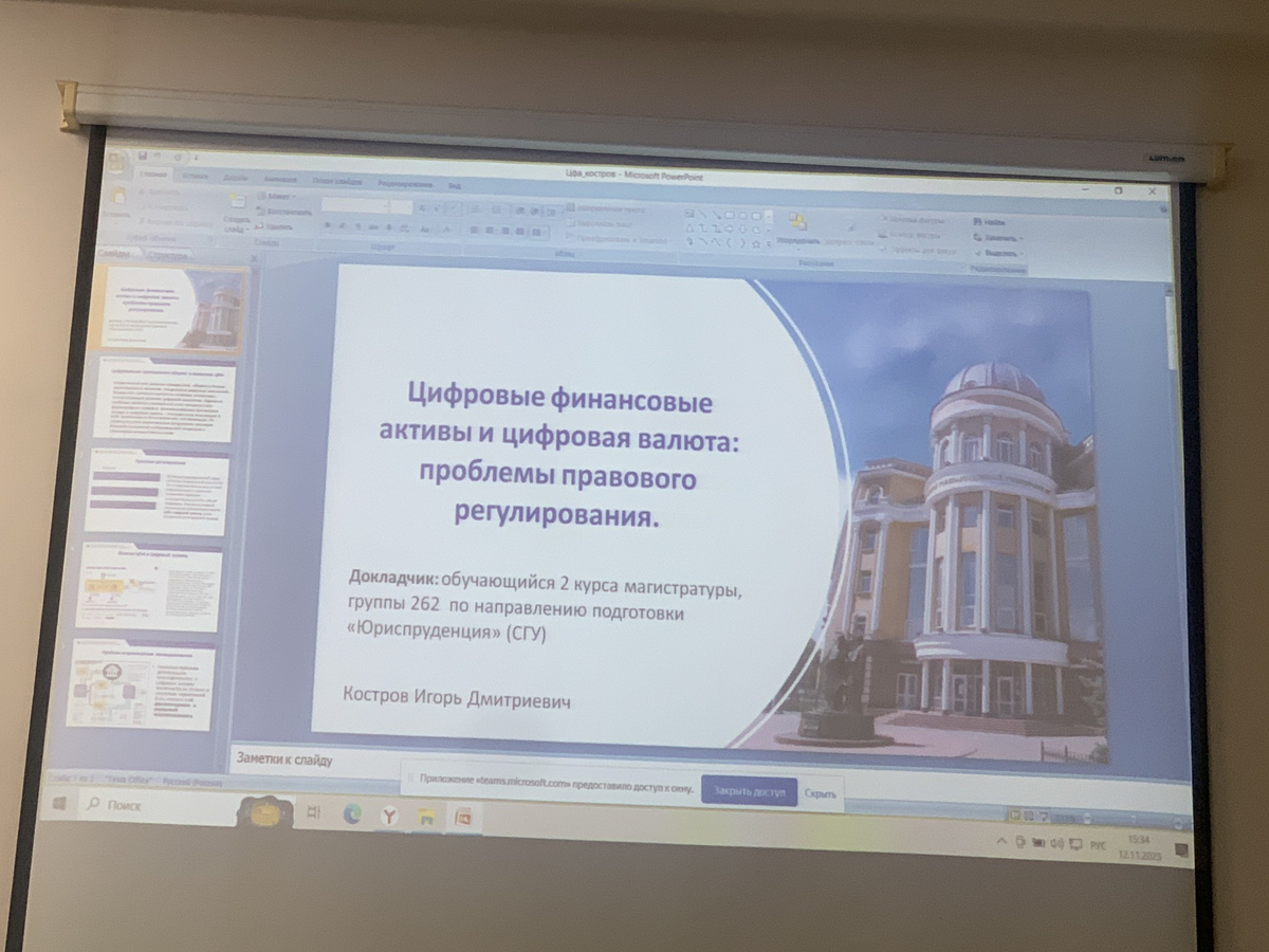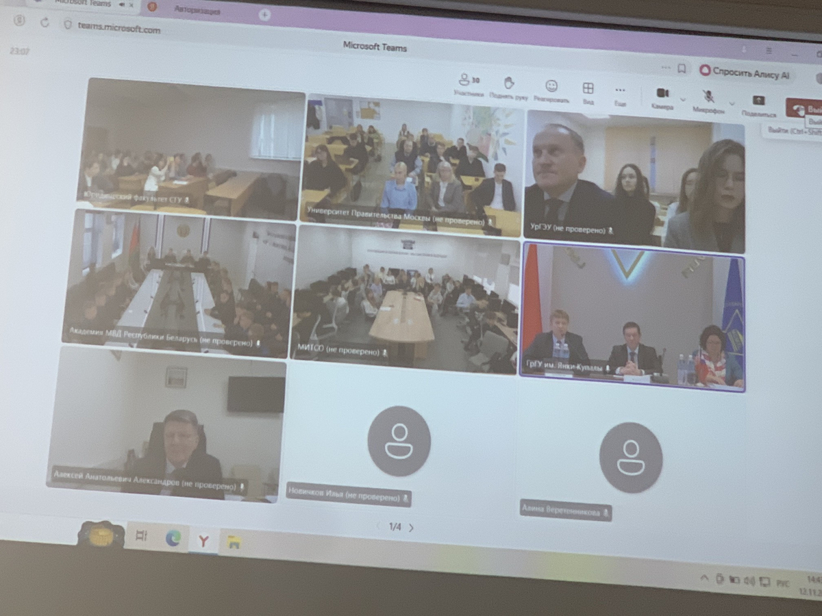 12 ноября студенты, магистранты и преподаватели кафедры гражданского права и процесса юридического факультета приняли участие в Международном (Беларусь-Россия) практико-ориентированном круглом столе"Правовое регулирование, использование искусственного интеллекта и цифровых технологий в гражданском (предпринимательском обороте)". В работе круглого стола участвовали ВУЗы Москвы, Саратова, Новосибирска, Екатеринбурга, Тамбова, Гродно (Беларусь), Минска (Беларусь), Полоцка (Беларусь).