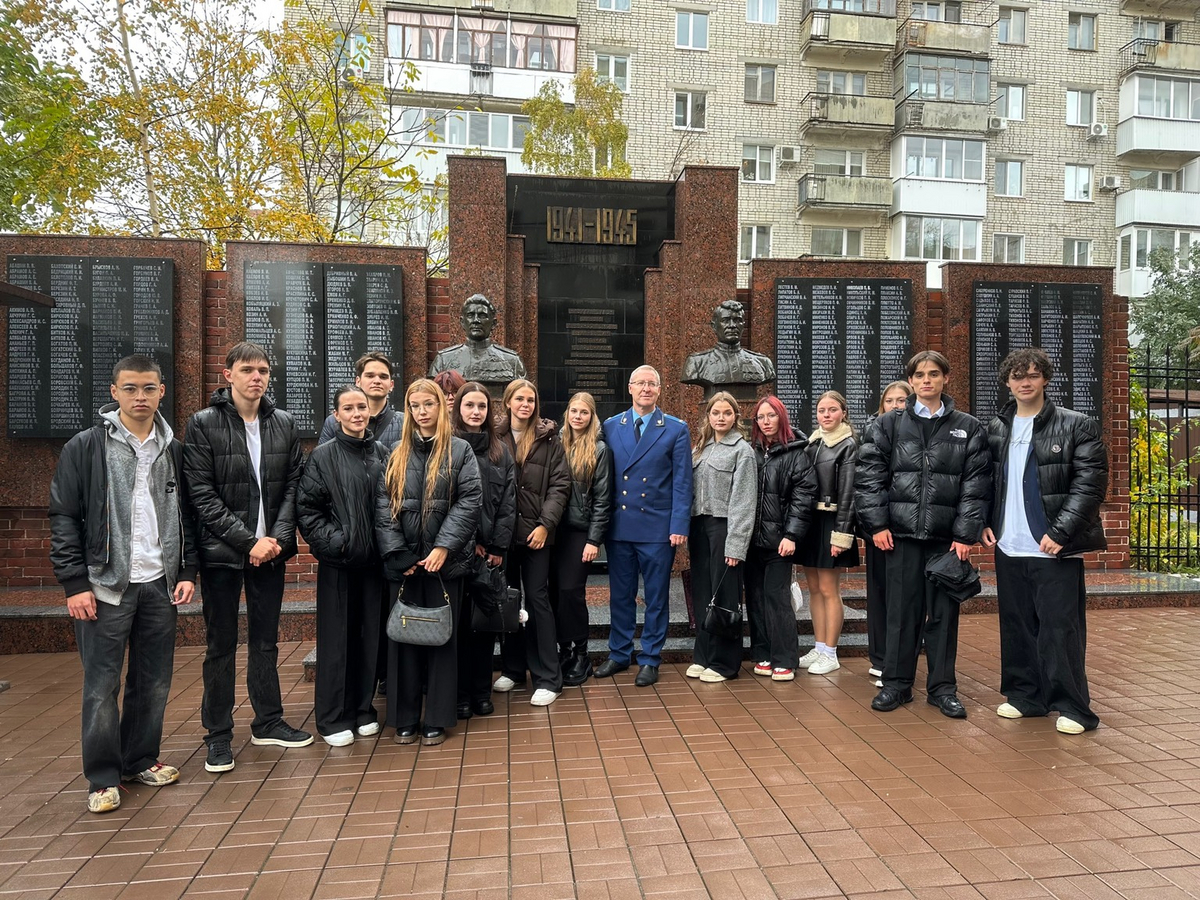22 октября 2025 года студенты 1 курса 191 группы специальности 40.05.04 «Судебная и прокурорская деятельность» вместе со старшим преподавателем кафедры теории государства и права Чулисовой Юлией Александровной посетили музей прокуратуры Саратовской области. Экскурсию по музею прокуратуры студентам провел Александр Николаевич Иванов – старший прокурор учебно-методического отдела прокуратуры Саратовской области – межрегионального центра профессионального обучения прокурорских работников и федеральных государственных гражданских служащих, советник юстиции, к.ю.н., доцент.