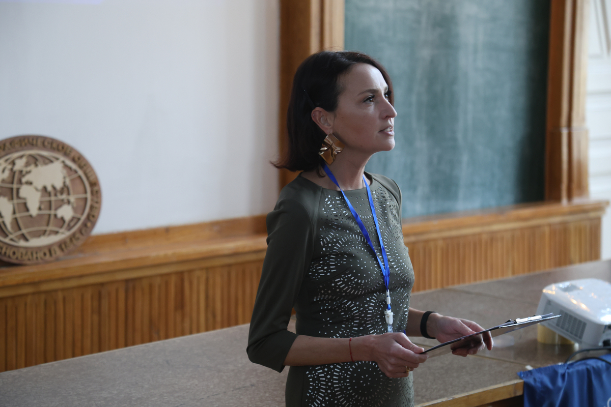 Модератор площадки – заведующая кафедрой экономической и социальной географии СГУ А.В. Затонская – в торжественной обстановке дала старт просветительской акции Русского географического общества в Саратовском университете: