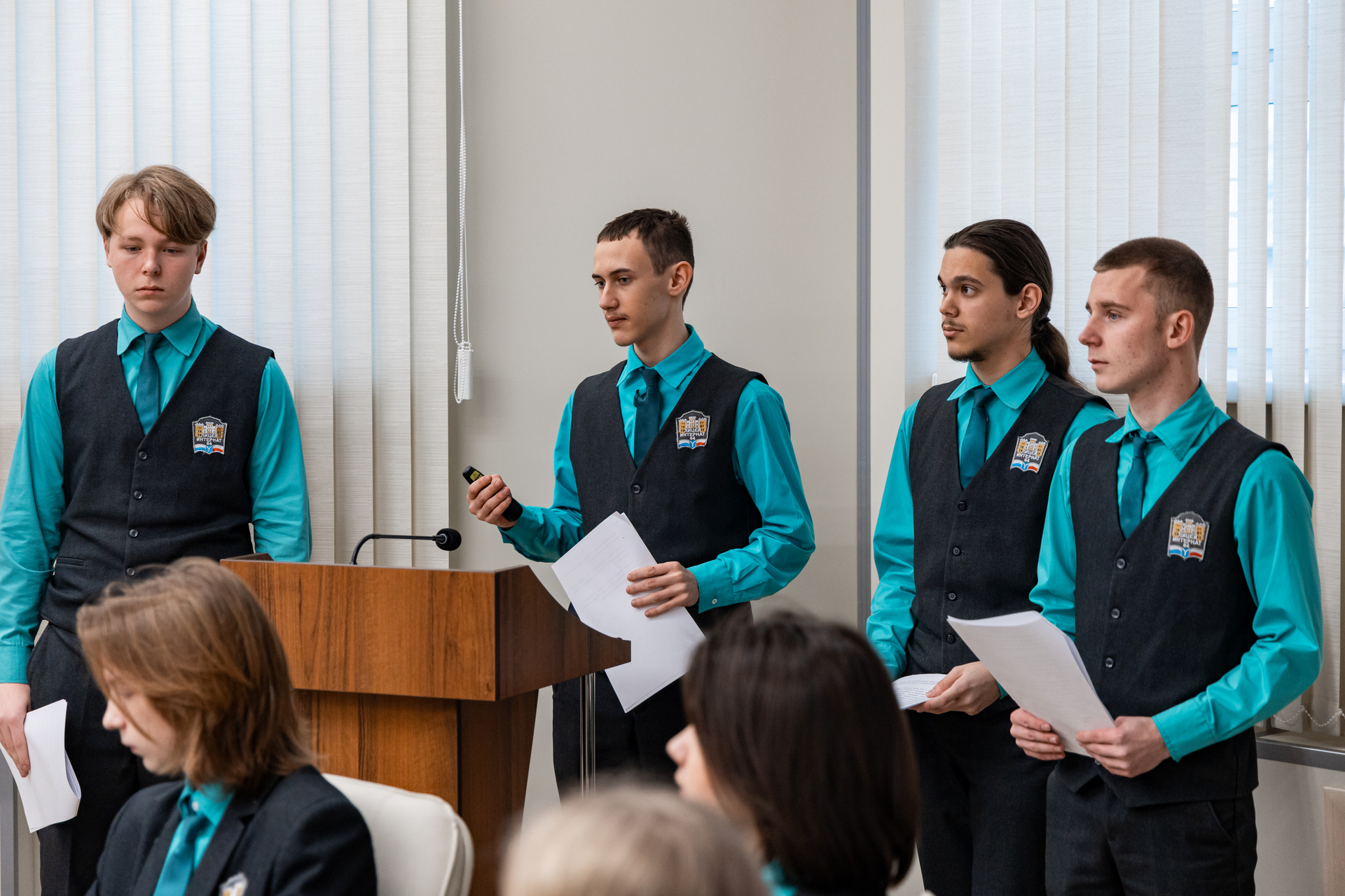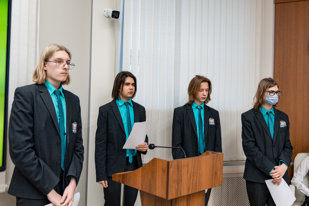 Перед началом презентации члены экзаменационной комиссии обратились со словами напутствия к ученикам Лицея-интерната 64.