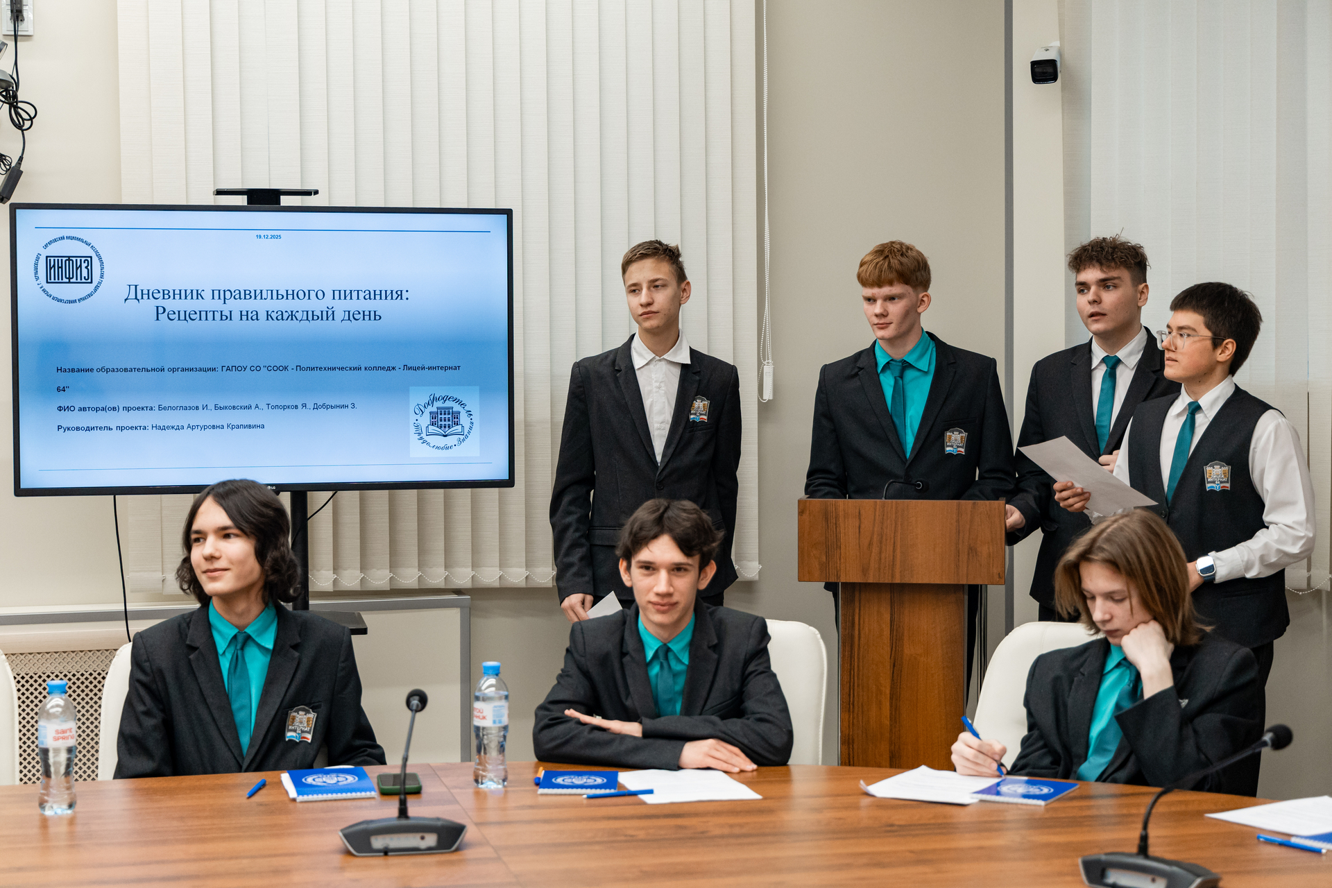 Школьники представили пять завершённых проектов, разработанных для решения конкретных бизнес-задач. В реализации проектов участвовали преподаватели кафедры физики открытых систем – А.Б. Адилова, Н.А. Крапивина, А.И. Шабанова.