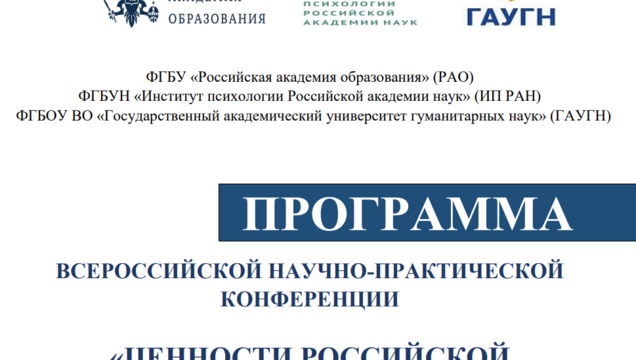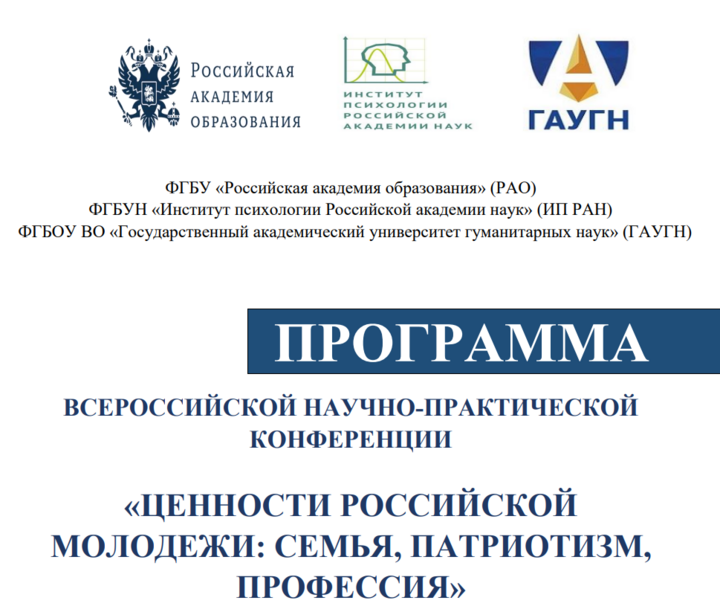 В Российской академии образования 2–3 декабря состоялась Всероссийская научно-практическая конференция «Ценности российской молодежи: семья, патриотизм, профессия». Соорганизаторами конференции выступили Институт психологии Российской академии наук и Федеральный научно-исследовательский социологический центр Российской академии наук.