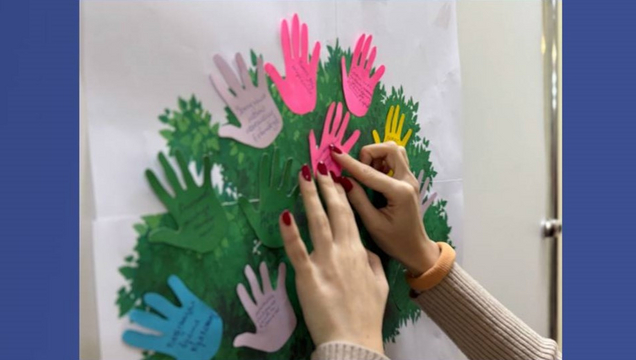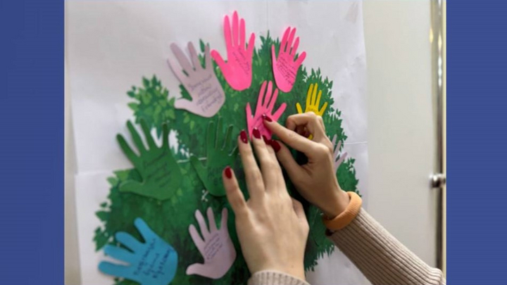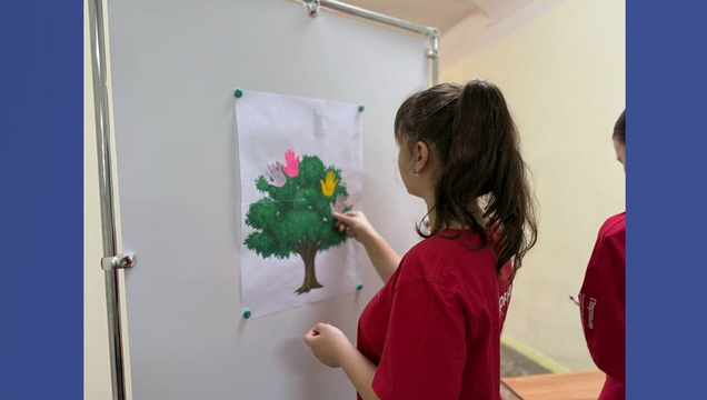 Центральным и самым символичным элементом мероприятия стало создание инсталляции «Дерево добрых дел». Студентам предлагалось оставить на его ветвях символический след своей доброй воли - бумажную ладонь, общепризнанный символ помощи и поддержки.