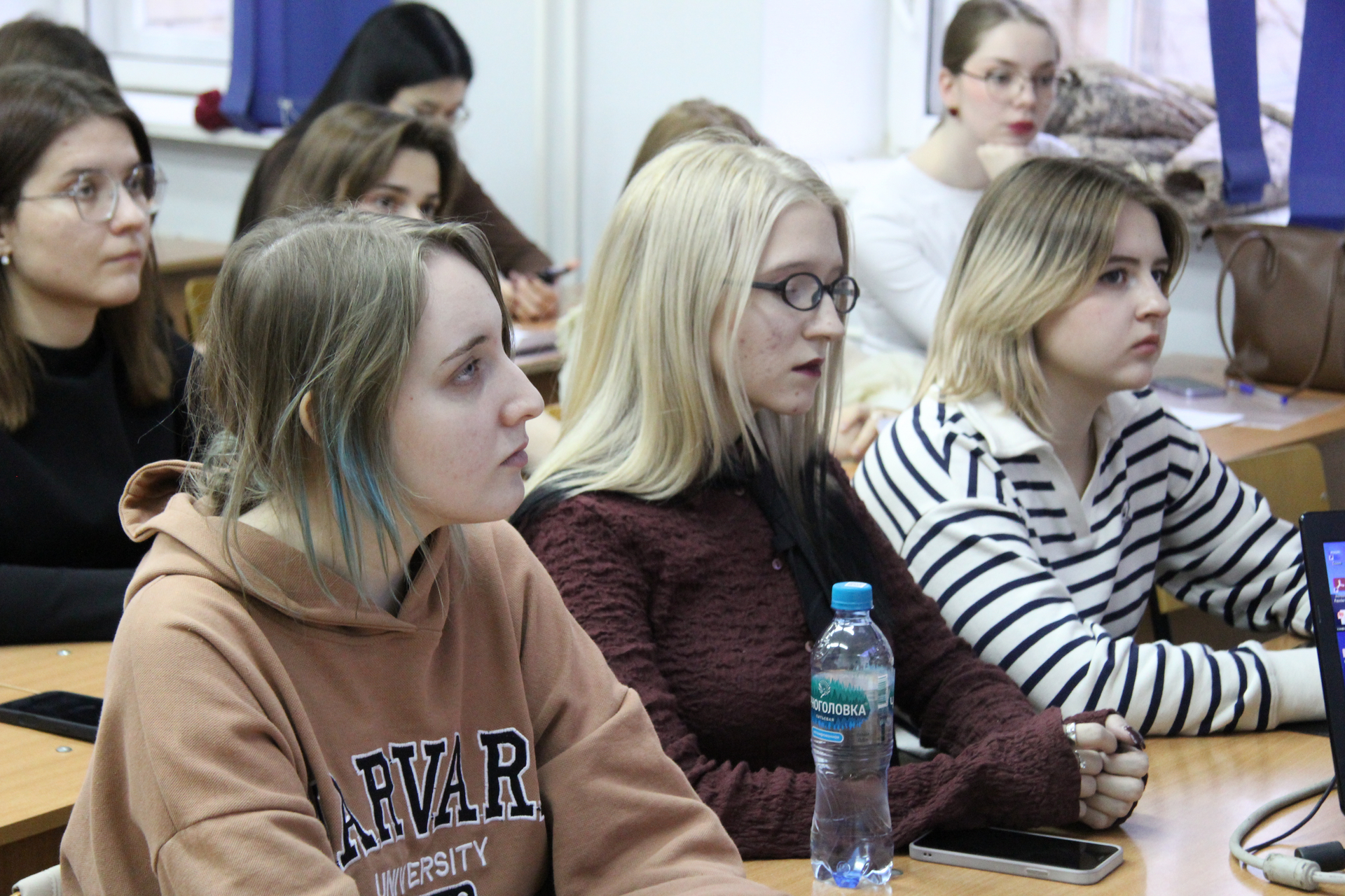 С народными песнями, записанными в селе Мегра Вологодской области, слушателей познакомили Мария Гриценко, Софья Добровольская, Валерия Караваева.