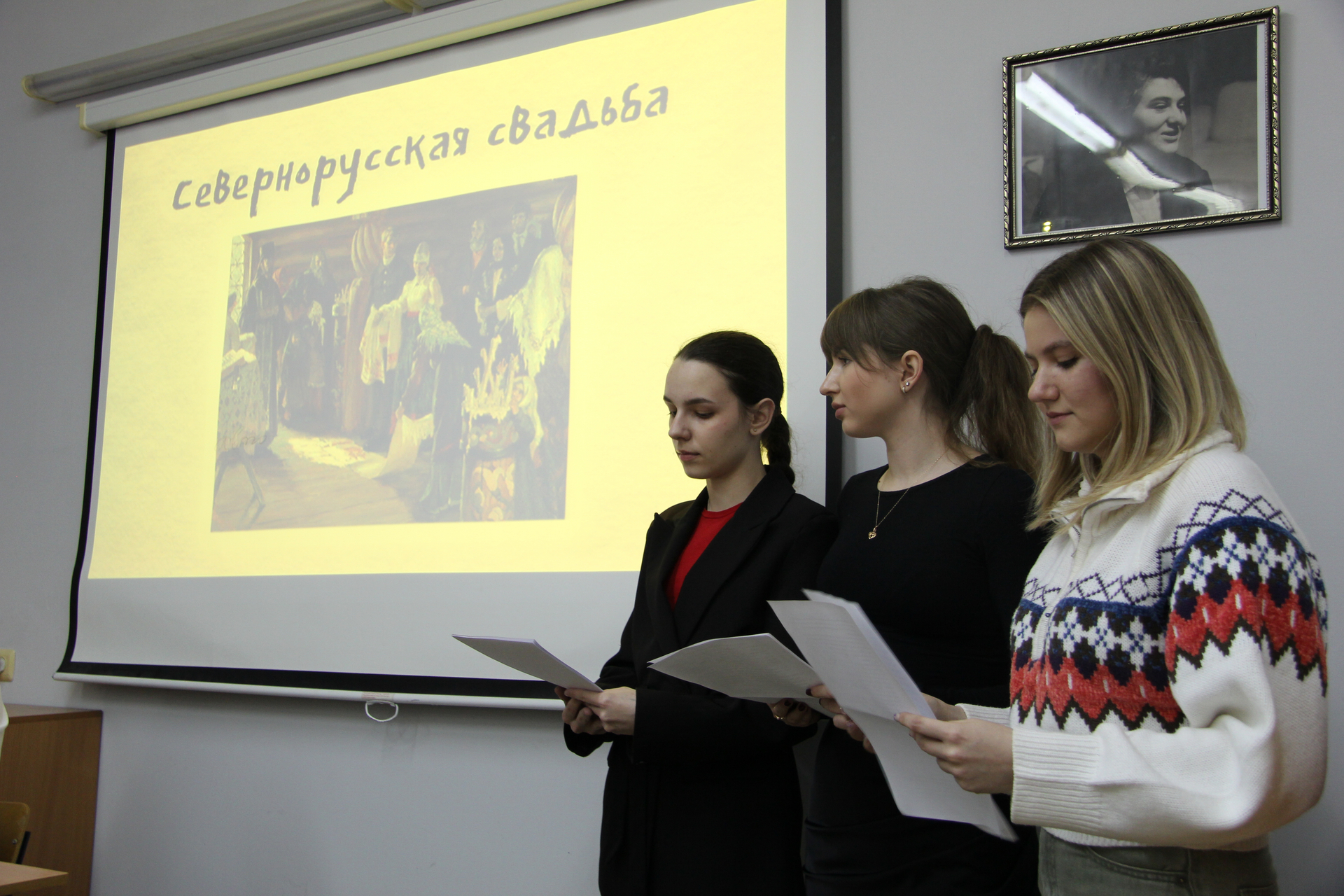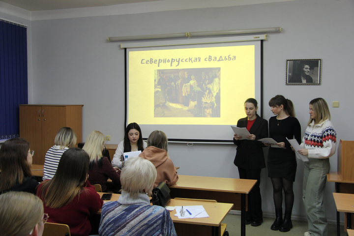 Тему свадебных обрядов продолжили Адельбаева Элина, Бондарева Елена, Соснина Анна, Елизавета Стрелкова, Юлия Титова, Валерия Бизяева, Кристина Тимофеева. Студенты рассказали об особенностях севернорусской свадьбы. Юлия Зюрюкина, Полина Куряча, Софья Лунева подготовили доклад о гаданиях на замужество в деревнях Русского Севера. Обрядовой культуре Севера также был посвящен доклад Алины Джайляу, Марины Синельниковой.