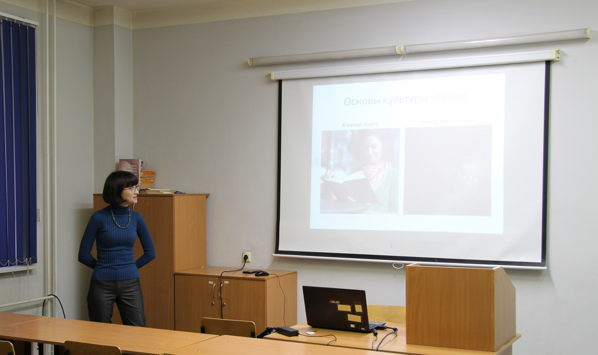 В среду, 5 ноября, кандидат филологических наук, доцент кафедры общего литературоведения и журналистики Т. А. Волоконская провела занятие в Клубе абитуриентов ИФиЖ. Татьяна Александровна выступила с лекцией, раскрывающей интересный парадокс: все умеют читать, но далеко не каждый владеет культурой чтения – системой алгоритмов восприятия, понимания и интерпретации текста.