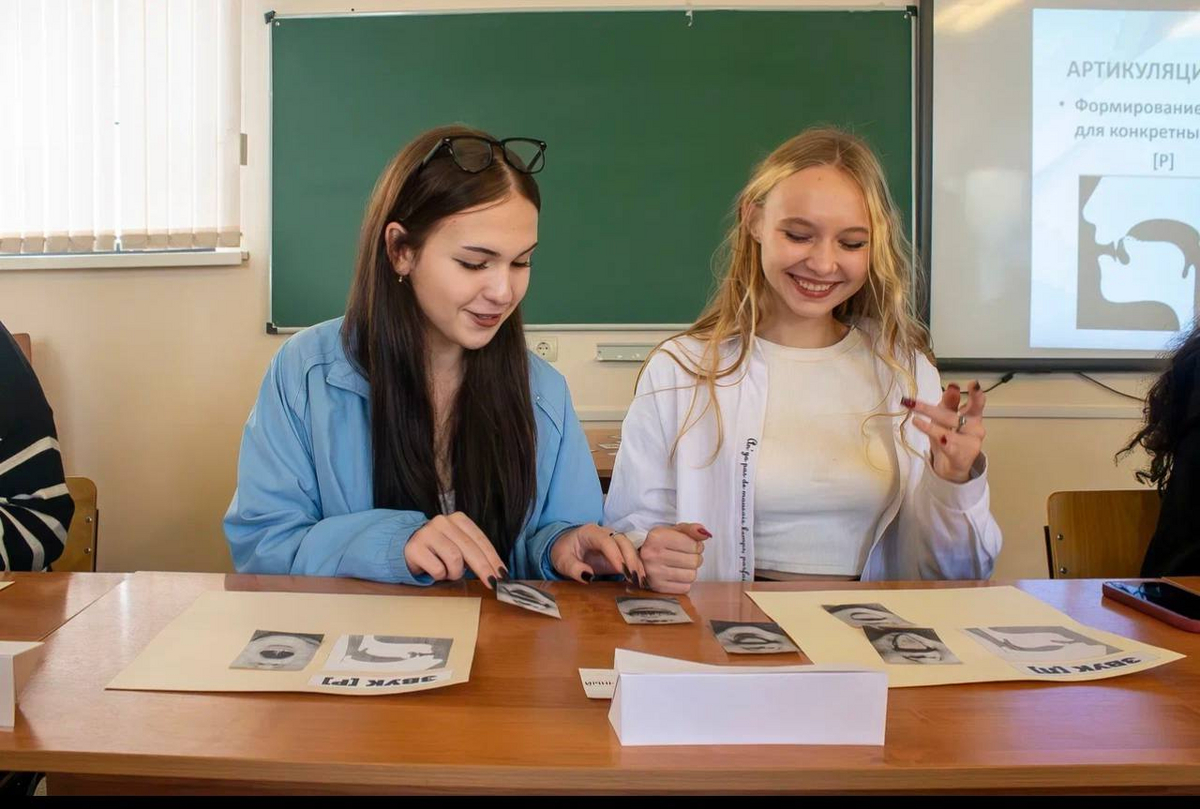 Для знакомства старшеклассников с направлением «Специальное (дефектологическое) образование» доцент кафедры логопедии и психолингвистики О.В. Кощеева организовала интерактивное занятие по логопедии на тему «Ступеньки к чёткой дикции». Школьники научились выполнять артикуляционную гимнастику, дыхательные упражнения, поучаствовали в играх на развитие звукопроизношения и выразительности речи.