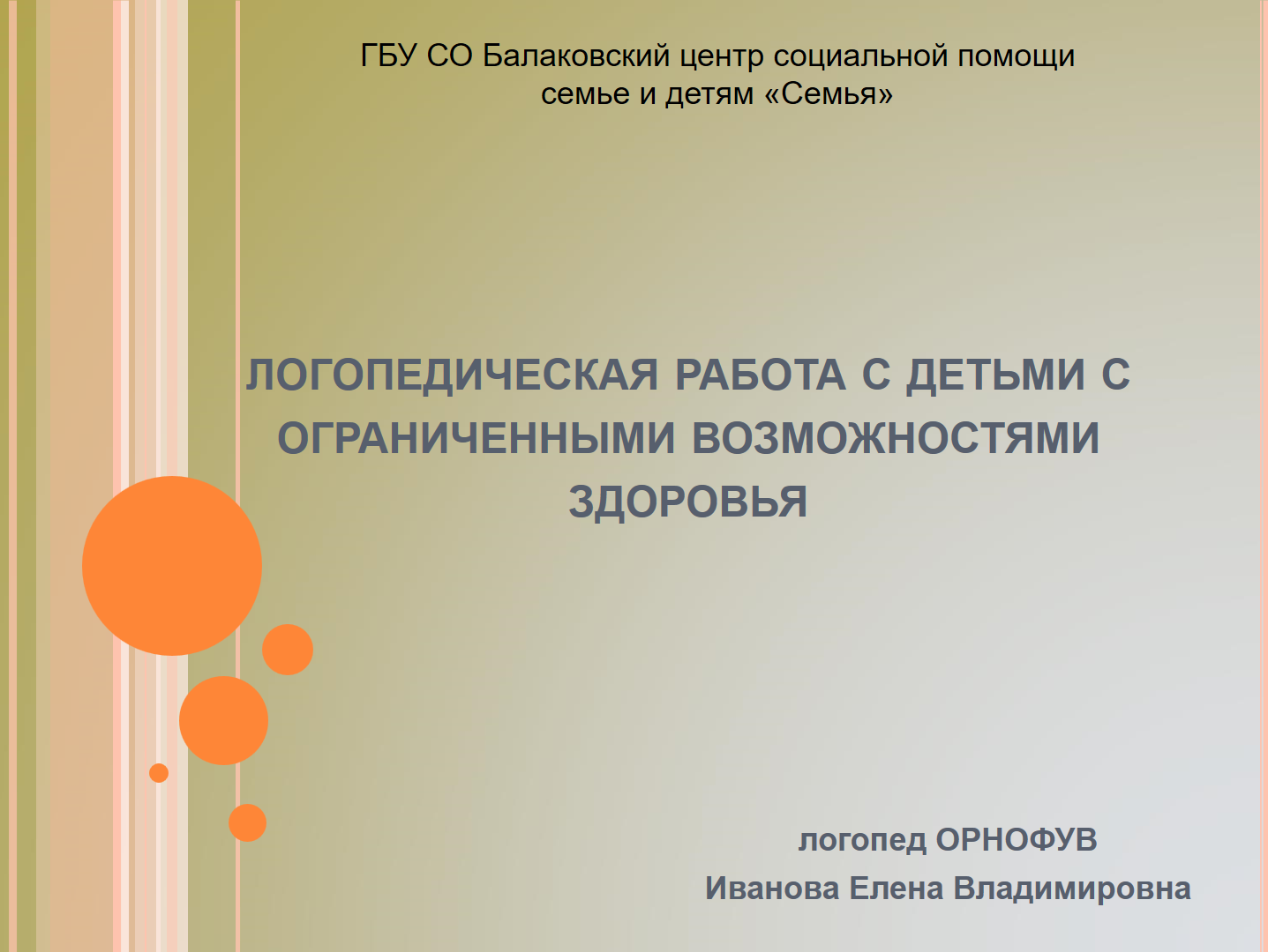 В рамках марафона состоялась встреча с Еленой Владимировной Ивановой – логопедом Государственного бюджетного учреждения Саратовской области «Балаковский центр социальной помощи семье и детям «Семья». Темой встречи была «Логопедическая работа с детьми с ограниченными возможностями здоровья».