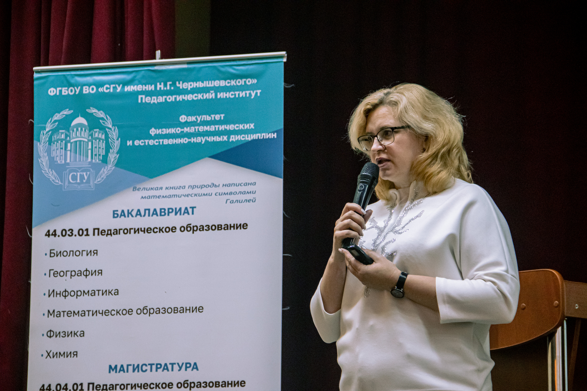 Встреча началась со знакомства с факультетом физико-математических и естественно-научных дисциплин Педагогического института, где готовят педагогов математики, физики, информатики, химии, биологии и географии. Благодаря ознакомительным видеороликам учащиеся смогли понять, какими исследованиями занимаются современные биологи, какие задачи решают географы, насколько обширны области применения математики и в чём заключается особенность профессии учителя информатики в современном цифровом мире. Особый акцент в презентации был сделан на обучении робототехнике и смежным направлениям.