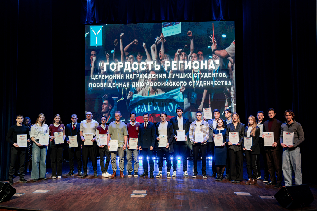 Ко Дню российского студенчества 13 активистам Саратовского университета торжественно вручили благодарственные письма Губернатора Р.В. Бусаргина. Награждение победителей Российской студенческой весны и различных спортивных соревнований состоялось в Поволжском институте управления имени П.А. Столыпина. Делегацию СГУ на церемонии возглавил проректор по молодёжной политике и воспитательной работе А.В. Головченко.