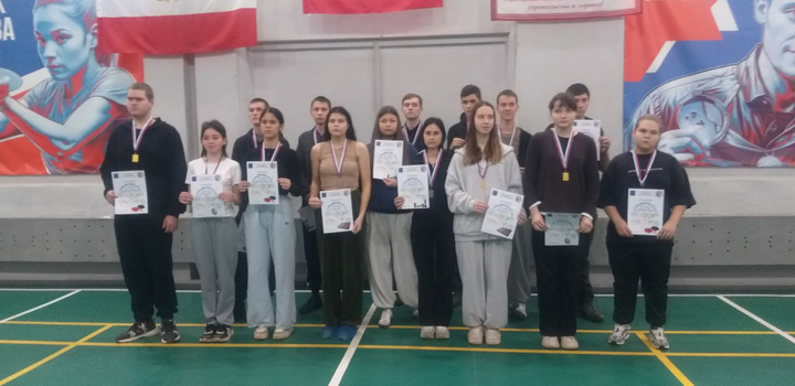 В соревнованиях по шахматам среди юношей принял участие студент группы 4301 Кузьмин Даниил. В соревнованиях по настольному теннису среди девушек студентка группы 1301 Дмитриева Вероника заняла 2 место.