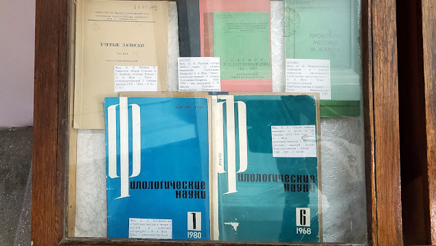 Основу выставки составили монографии о «Современной идиллии» Салтыкова-Щедрина, о сатире натуральной школы, о русской прозе XIX века; подготовленные ею отдельные тома полного собрания сочинений А. И. Герцена и М. Е. Салтыкова-Щедрина, издание «Свистка» - сатирического приложения к журналу «Современник» - в серии «Литературные памятники», сборник литературно-критических работ Н. Г. Чернышевского с подготовкой текста и примечаниями профессора А. А. Жук.