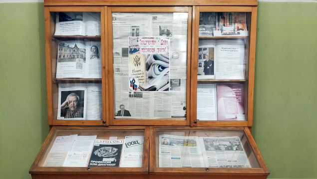 Открывается выставка, посвящённая Дню российской печати, который отмечается ежегодно 13 января. В этот день принято поздравлять всех, кто связан с выпуском печатных и электронных изданий – журналистов, редакторов, корректоров, верстальщиков, фотографов СМИ. Праздник учреждён постановлением Президиума Верховного Совета Российской Федерации от 28 декабря 1991 г. и связан с исторической датой − началом издания первой российской печатной газеты «Ведомости», основанной указом Петра Великого в 1793 году. Её тираж составлял всего тысячу экземпляров, а редактировал издание сам Петр I. Полное название первого номера − «Ведомости о военных и иных делах, достойных знания и памяти, случившихся в Московском Государстве и во иных окрестных странах». Первым редактором «Ведомостей» был директор московского Печатного двора Федор Поликарпов. А первым русским репортёром можно считать переводчика Якова Синявича, который по приказу царя в 1719 году начал освещать общественно значимые события. В 1870 году в качестве эксперимента появилась подписка, что очень понравилось читателям и уже к 1914 году существовало более 3000 изданий. После Октябрьской революции издание «Ведомостей» было прекращено и возобновилось только в 1991 году. В период Советского Союза, когда встал вопрос о необходимости выделить праздничный день, посвящённый работникам печати, его датой изначально выбрали 5 мая – день выхода первого номера газеты «Правда». После распада СССР было решено вернуться к исторической дате – 13 января, которая празднуется по сей день.