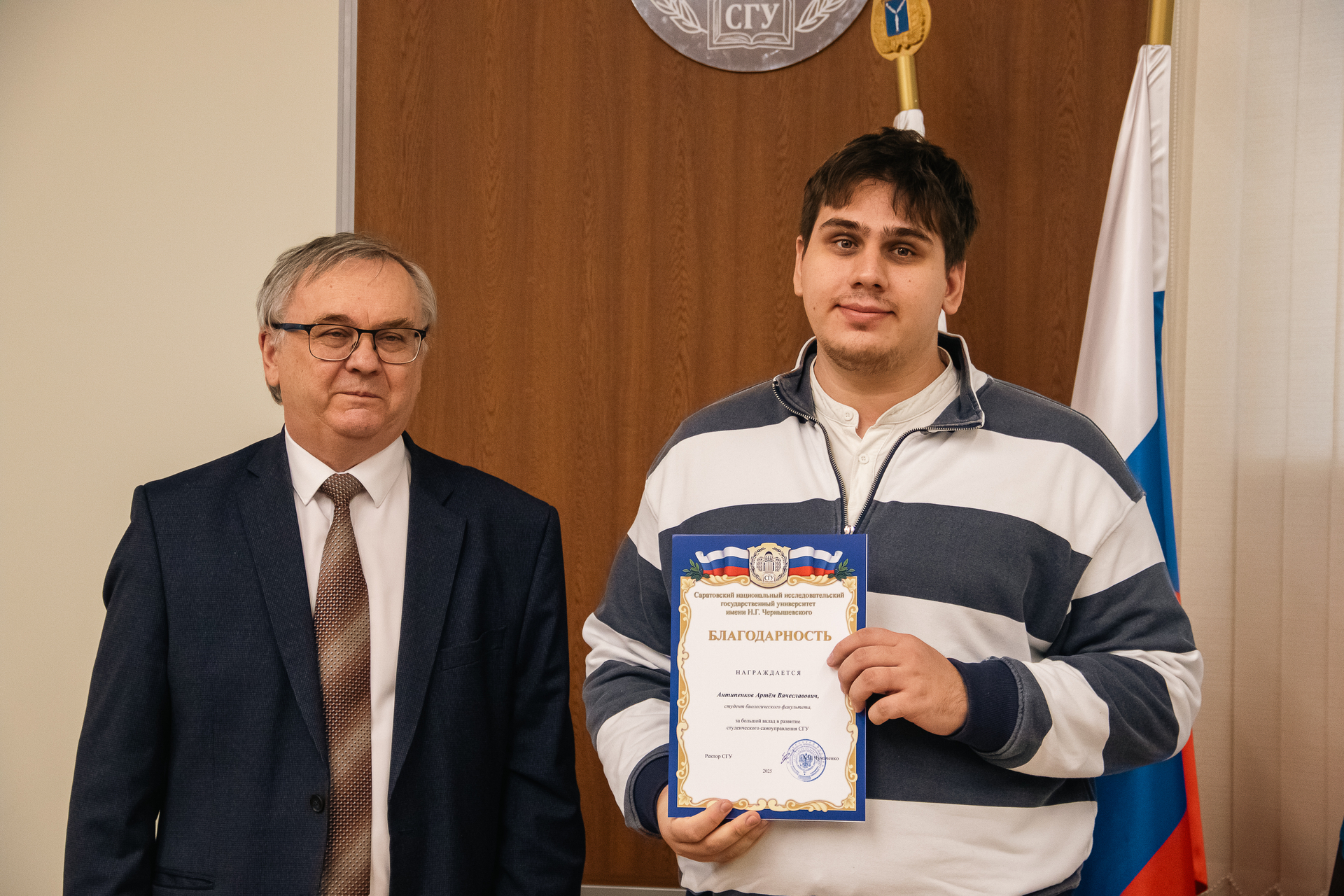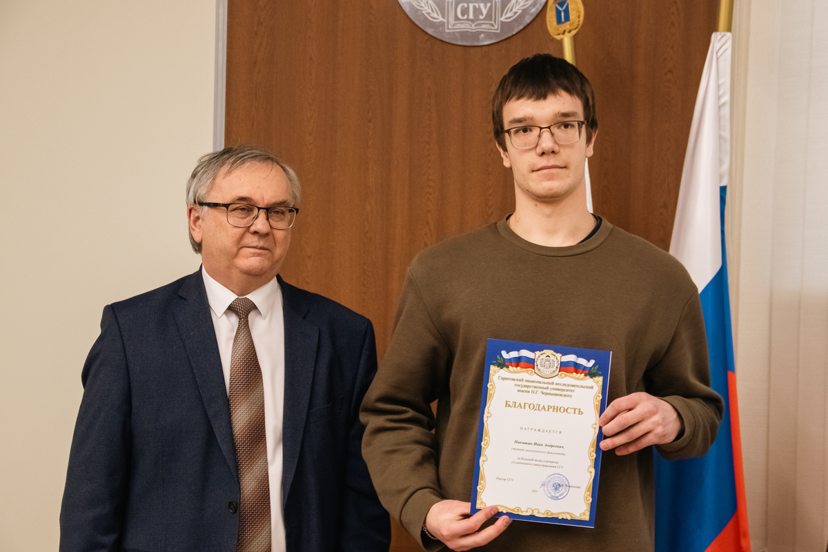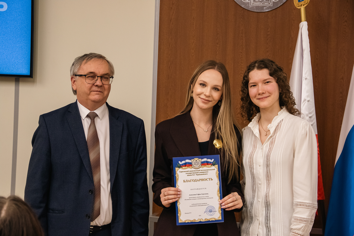 За большой вклад в развитие студенческого самоуправления СГУ А.Н. Чумаченко отметил благодарностями отличившихся председателей студенческих советов. Среди них: