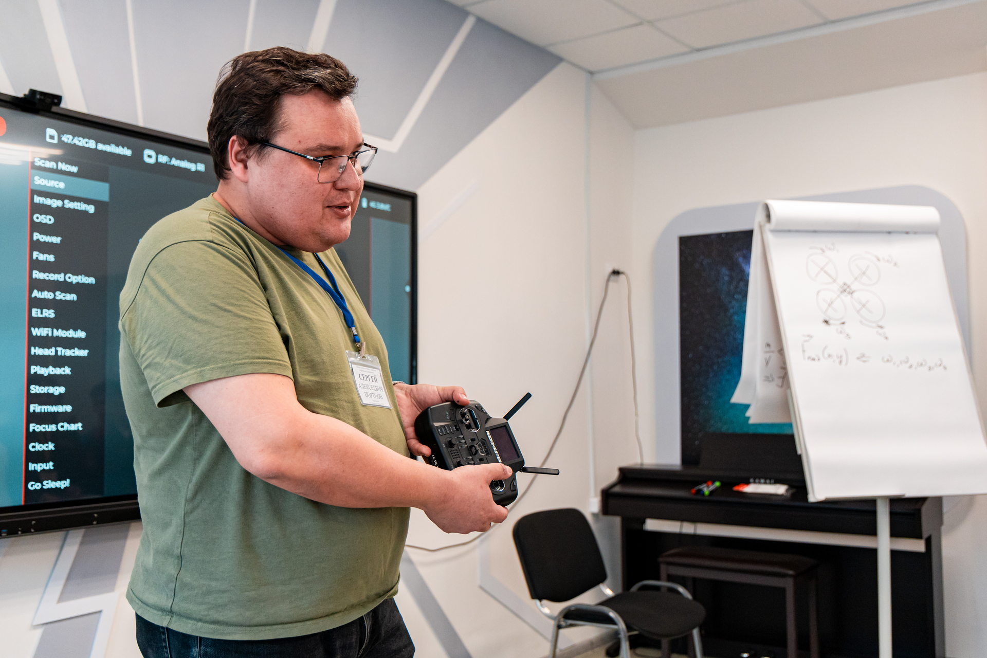 На лекции доцента кафедры динамического моделирования и биомедицинской инженерии С.А. Портнова «Введение в левитацию» старшеклассники узнали о проектировании летательных аппаратов, таких как самолёты и вертолёты, а в практической части занятия посмотрели на запуск дронов.