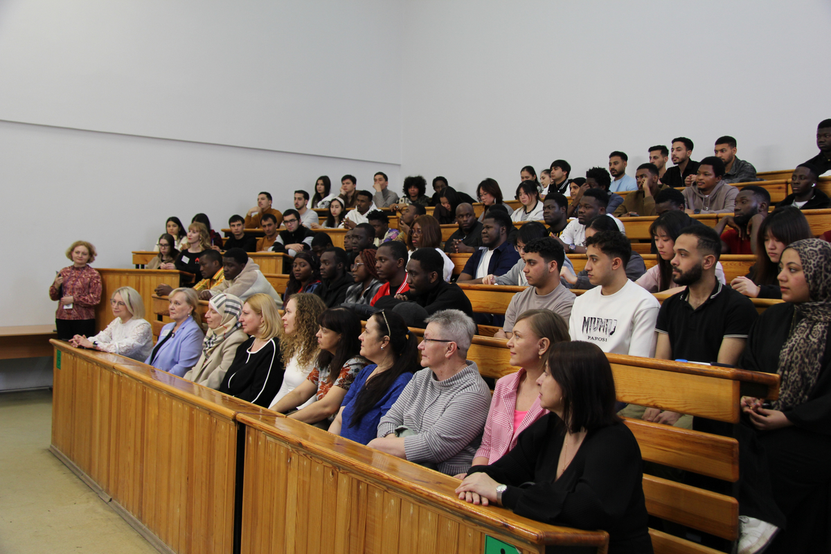 Сегодня у нас настоящий большой праздник. Как приятно нам видеть здесь вас – представителей разных стран мира, народов, говорящих на разных языках. Вас объединило здесь то, что вы приехали в Россию – великую страну, то, что вы учитесь и живёте в Саратове – прекрасном городе на Волге, где так много старинных вузов, и вы имеете возможность общаться с замечательными преподавателями, которые дадут вам важные знания. И, конечно, вас объединило изучение русского языка, который откроет для вас новые возможности. Желаю вам успехов!