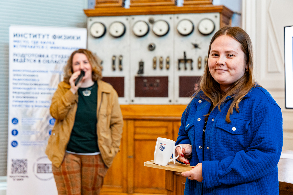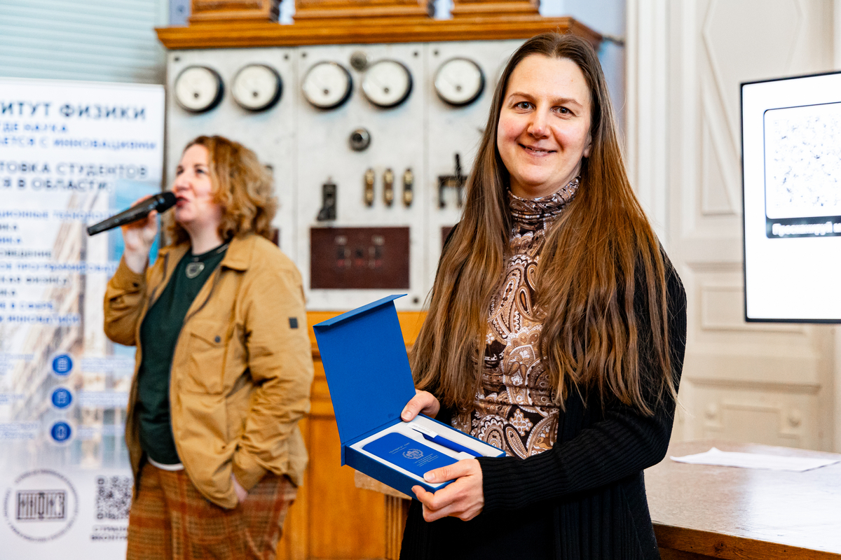Открывая встречу, организаторы напомнили гостям о возможности поддержать развитие Института физики СГУ через пожертвование в фонд целевого капитала в один клик. Среди тех, кто внес вклад, разыграли памятные подарки – их обладателями стали первокурсник Института физики Дмитрий Ледванов, ассистент кафедры физики открытых систем Надежда Крапивина, доцент кафедры физики открытых систем С.Е. Шешукова.