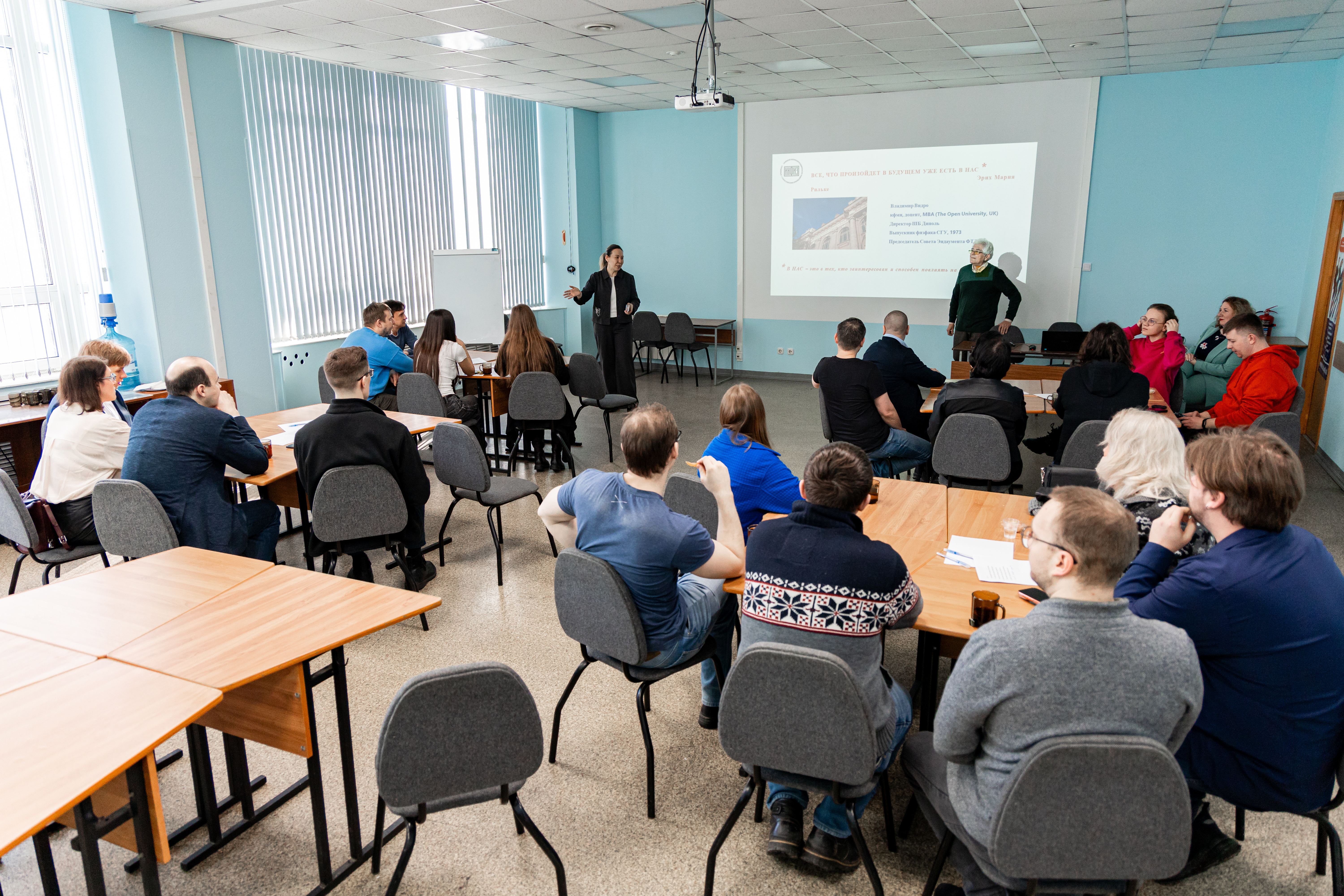 К обсуждению стратегии развития ИнФиза на бизнес-завтраке активно подключились и внешние эксперты. Проблемный контур задал директор школы бизнеса «Диполь», выпускник физического факультета СГУ В.Л. Видро. В центре его размышлений оказались вопросы, связанные с проектированием и сборкой разных типов поддерживающих сообществ внутри и вокруг университета.