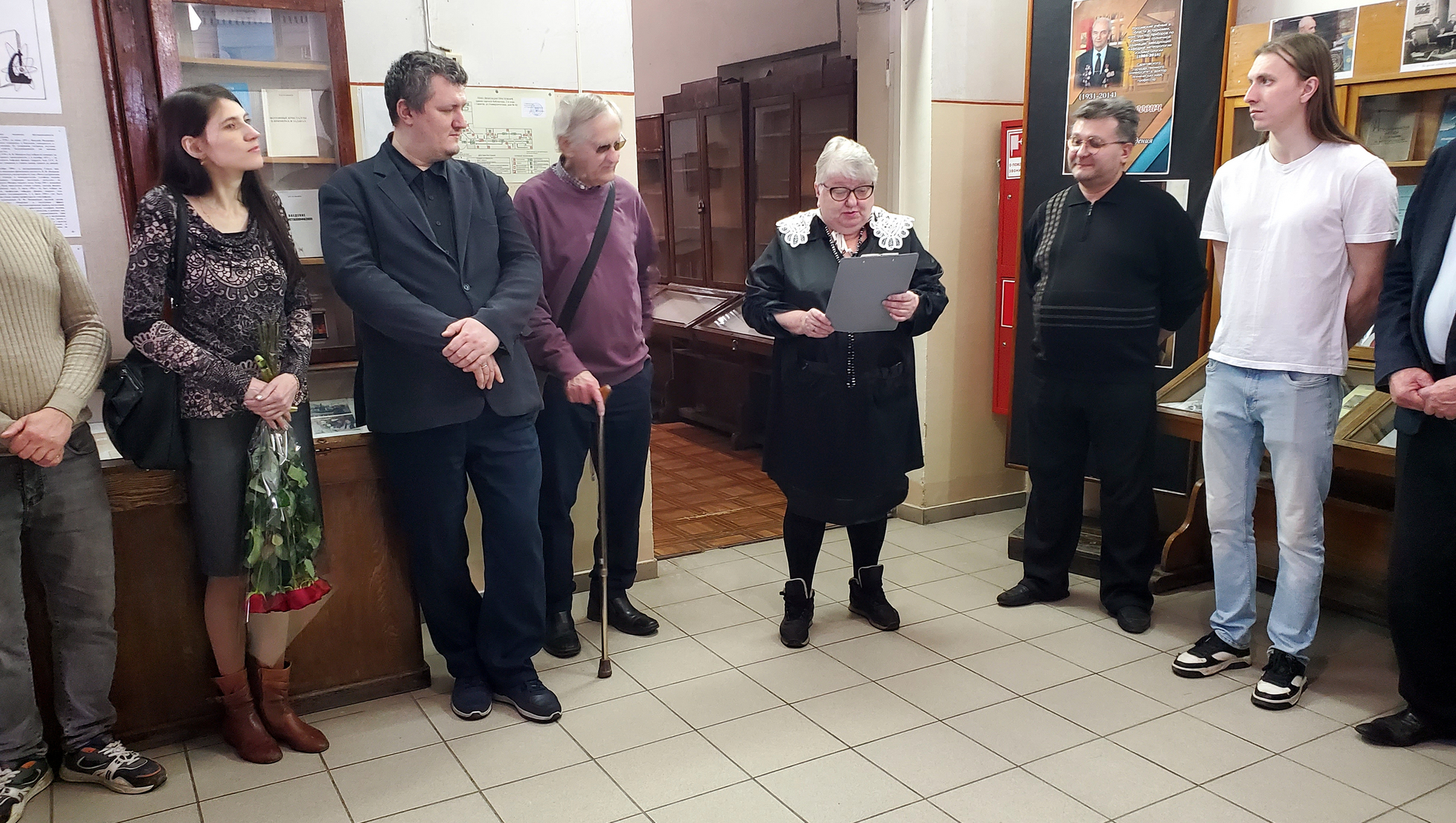 Главный библиотекарь отдела массовой работы ЗНБ Т.В. Гордеева, подготовившая материалы экспозиции, открыла выставку. Татьяна Владимировна подробно рассказала о представленном материале, отражающем славный 60-летний путь старейшего сотрудника кафедры физики твёрдого тела и Института физики В.Ф. Названова с момента начала его работы в Саратовском университете до наших дней.
