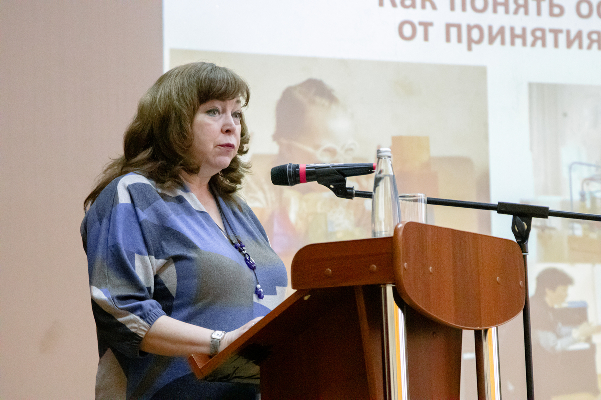 Заведующий кафедрой коррекционной педагогики Ю.В. Селиванова посвятила своё выступление теме «Как понять особого ребёнка». Инклюзивная компетентность сегодня входит в основной арсенал компетентностей педагога дошкольного образования и состоит из четырёх базовых компонентов: «хочу»; «знаю как»; «могу»; «делаю выводы и готов к изменениям».