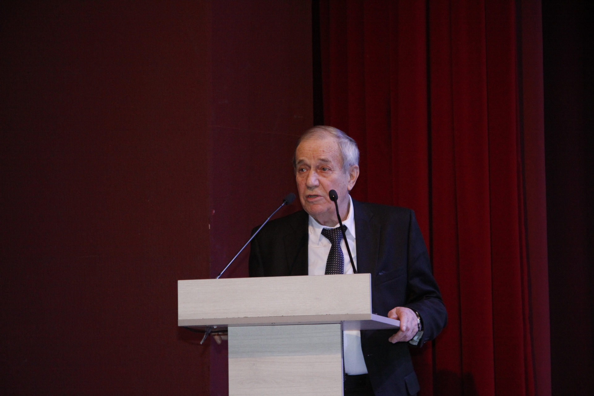 Декан географического факультета В.З. Макаров выступил с отчётом о работе факультета за 2021–2025 годы. В докладе декана дана характеристика учебной, научной деятельности факультета за истекшее пятилетие. На слайдах были представлены показатели успеваемости студентов за разные годы, показаны цифры публикационной активности преподавателей и студентов, их участие в научных конференциях и семинарах. За отчётный период было опубликовано 6 монографий и более 370 статей по разным проблемам современной географии. В.З. Макаров особо подчеркнул не только научную, но и практическую ценность работ, выполненных по грантовым, хоздоговорным темам и госзаданию. В докладе также была отражена воспитательная работа со студентами, школьниками города и области, рассмотрены направления социальной работы факультета.
