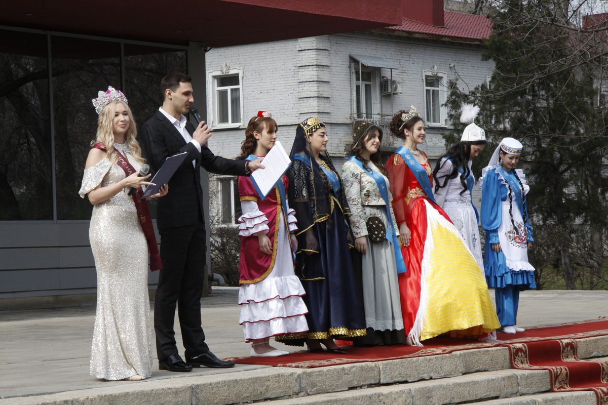 На сцене девушки представили изысканные национальные костюмы, рассказали о культурных особенностях и обычаях своих народов, порадовали зрителей яркими творческими номерами.