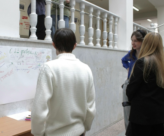 В преддверии 23 Февраля в атриуме XI корпуса Саратовского университета прошла праздничная акция, приуроченная ко Дню защитника Отечества.