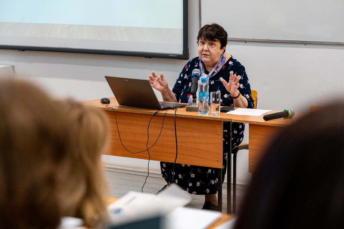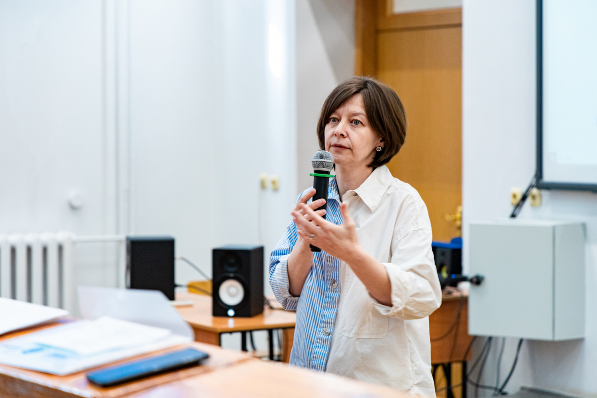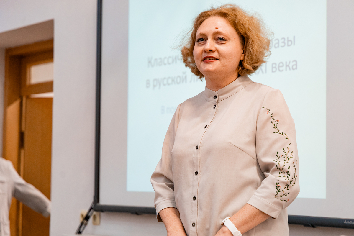 Советник при ректорате, куратор педагогических проектов СГУ, профессор Е.Г. Елина приветствовала педагогов на площадке для учителей русского языка и литературы: