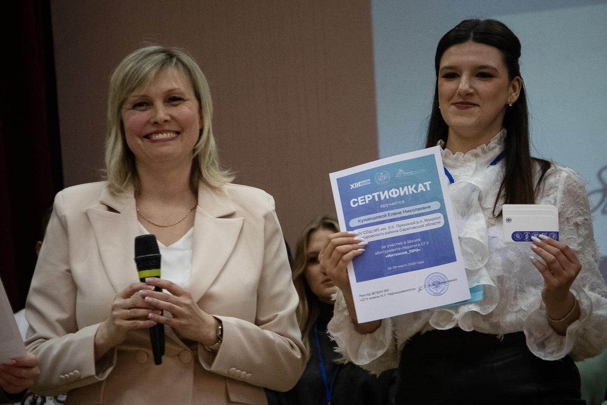 30 марта завершилась трёхдневная Школа абитуриента-педагога СГУ «Интенсив_ПРО». Старшеклассники Саратовской области слушали интерактивные лекции от педагогов институтов, участвовали в образовательных мастер-классах. На торжественной церемонии закрытия в XII корпусе СГУ школьникам вручили сертификаты о прохождении курса для абитуриентов.