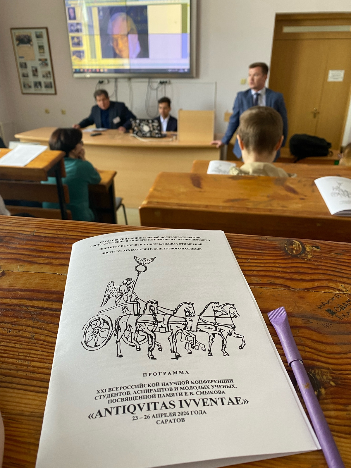 23 апреля в Саратовском университете начала работу XXI Всероссийская научная конференция студентов, аспирантов и молодых учёных «ANTIQUITAS JUVENTAE», посвящённая памяти Евгения Владимировича Смыкова – выдающегося специалиста по истории Древнего Рима, кандидата исторических наук, доцента кафедры истории Древнего мира СГУ.