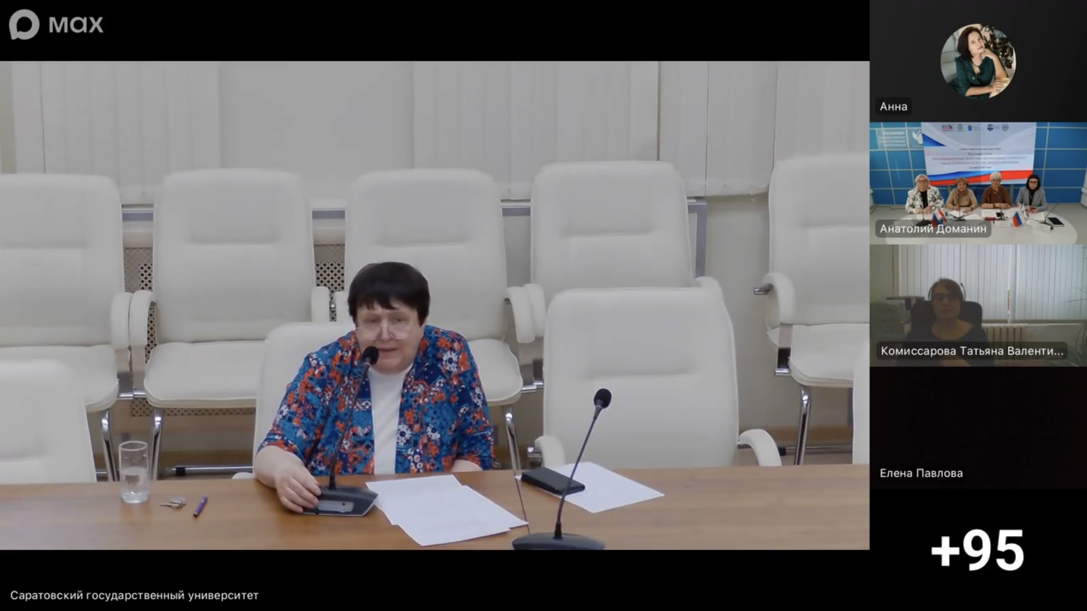 В своём выступлении Е.Г. Елина остановилась на особенностях организации Виртуального педагогического класса СГУ. Проект для старшеклассников стартовал в 2021 году при поддержке «Приоритета-2030» – в каждом сезоне программа обновляется, занятия проводят ведущие преподаватели и учёные СГУ.