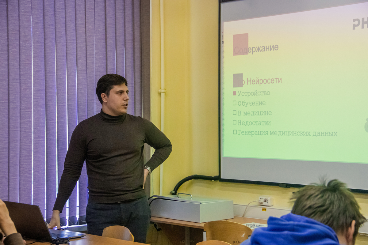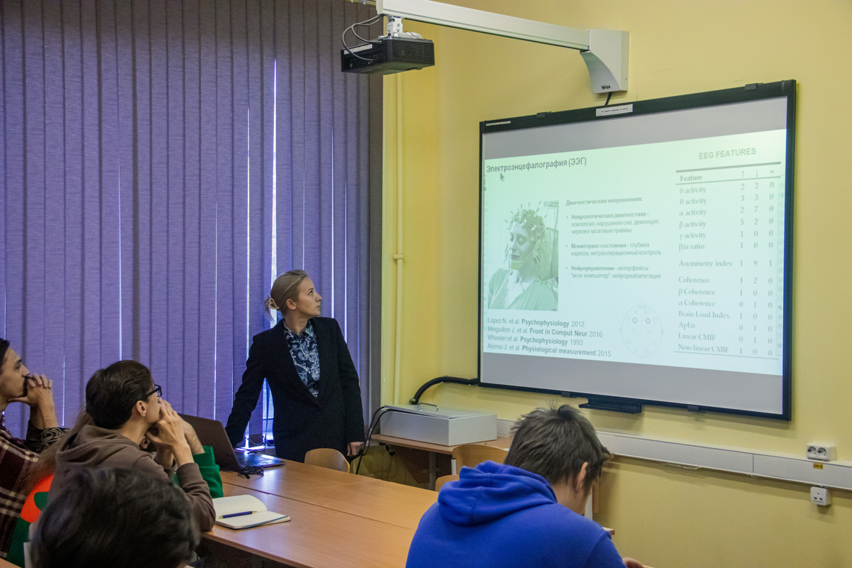 Доцент кафедры динамического моделирования и биомедицинской инженерии Е.И. Боровкова представила разработки по объективному контролю ментальной производительности на основе анализа биосигналов, а доцент кафедры динамического моделирования и биомедицинской инженерии Ю.М. Ишбулатов показал, как искусственные нейронные сети помогают диагностировать связи между элементами системы кровообращения. Заведующий кафедрой динамического моделирования и биомедицинской инженерии А.В. Караваев рассказал о моделировании сложных биофизических систем и методах анализа синхронизации их элементов.