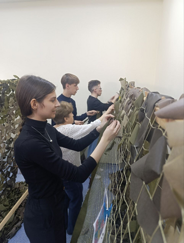 Студенты СГУ имени Н.Г. Чернышевского и активисты патриотического клуба "Я Горжусь СГУ" посетили мастер-класс по изготовлению маскировочных сетей