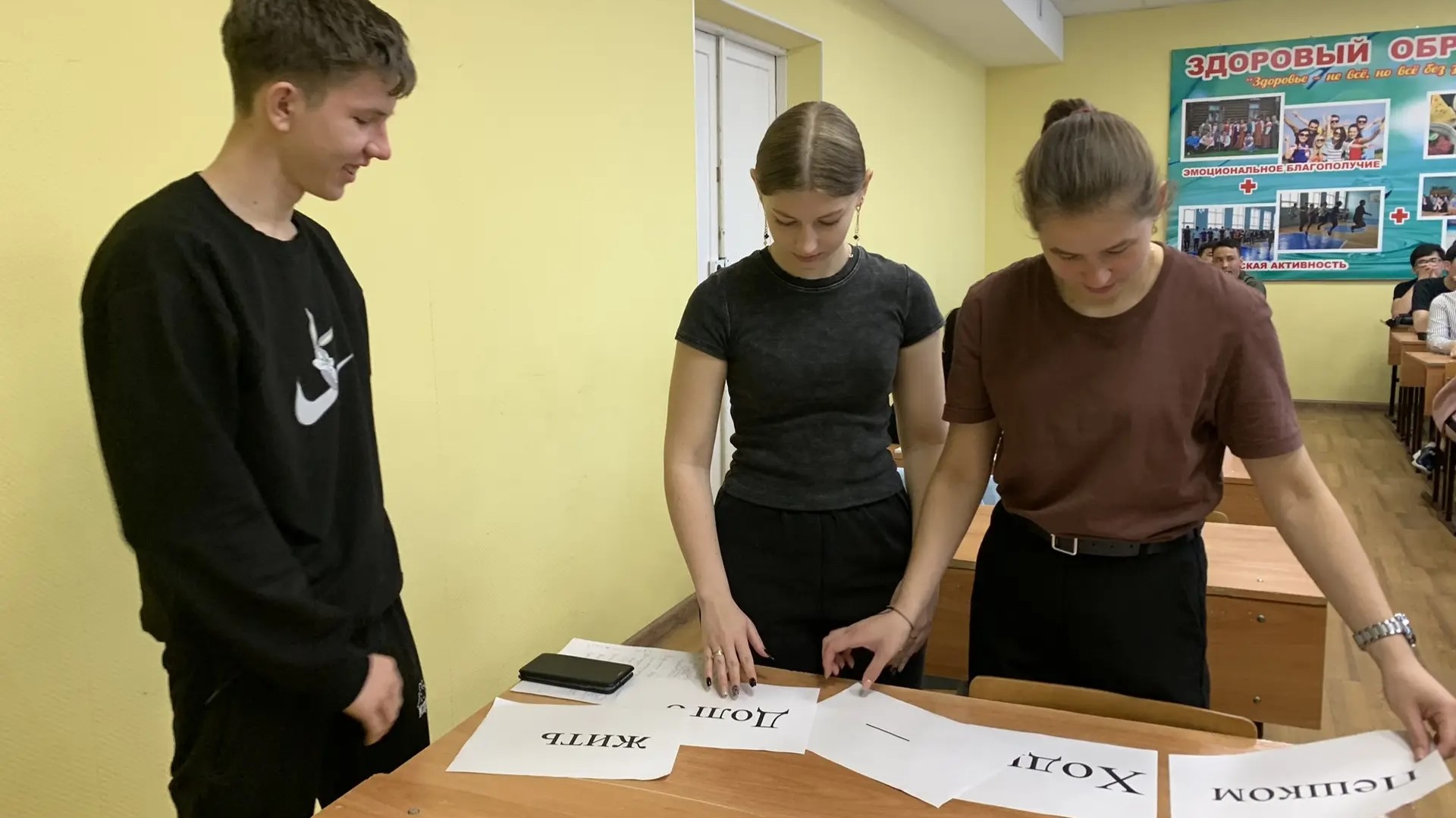 Следующим этапом стал интеллектуальный футбол: студенты отвечали на вопросы, связанные с различными аспектами здорового образа жизни. В завершение интерактивной части И. Вилков провел викторину «Миф или реальность?», в рамках которой были проанализированы распространенные утверждения о здоровье с точки зрения их истинности/ложности. Ярким подтверждением ценности здоровья в жизни человека стали продекламированные О. Вишняковой, Д. Ларионовым, В. Тришечкиной тематические стихотворения А. Барто, Л. Гржибовской, Э. Керры.