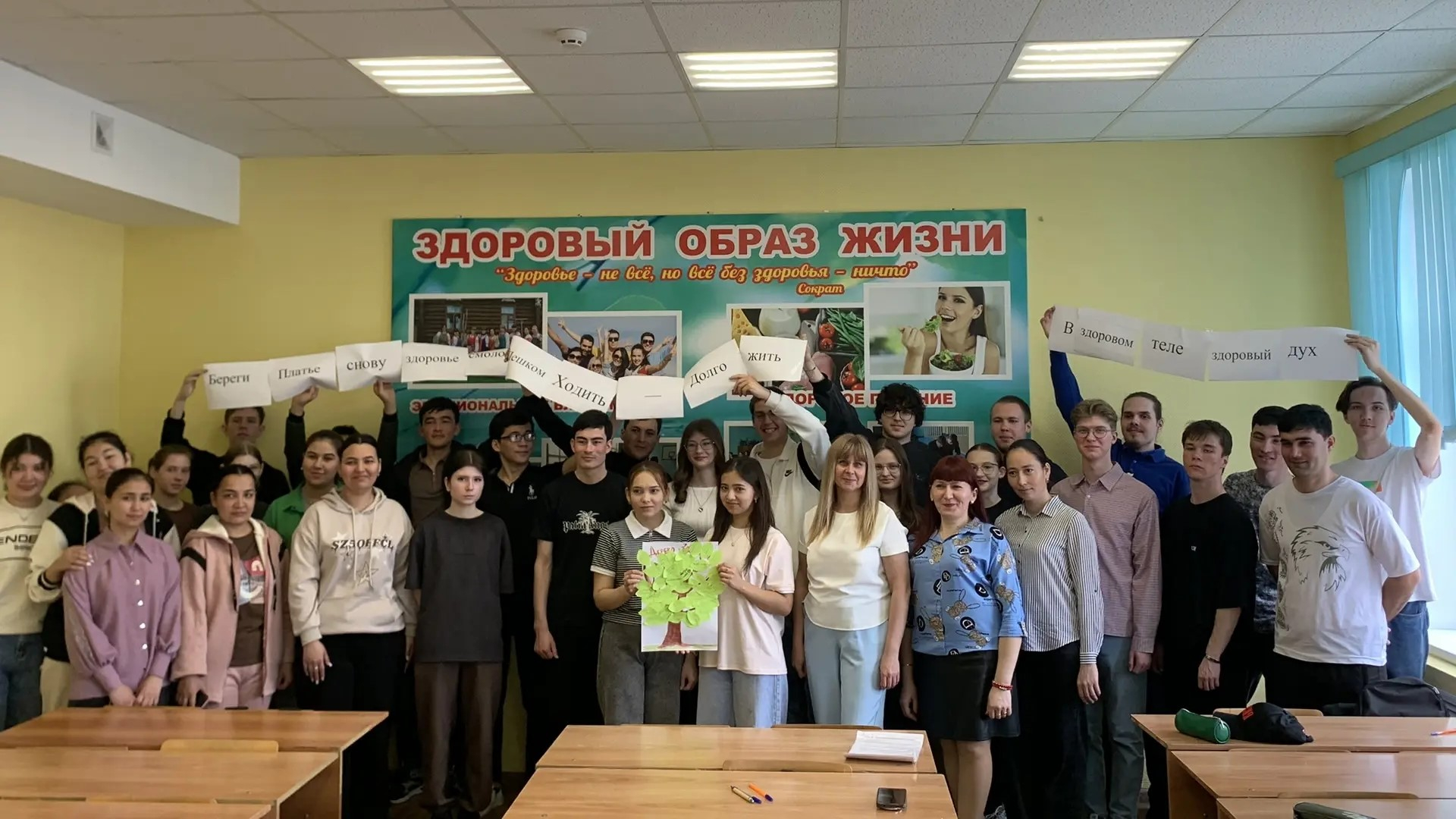 Заключительной частью информационно-познавательного часа стала рефлексия, во время которой студенты перечислили полезные привычки, которых необходимо придерживаться для укрепления своего организма, и прикрепили их на символическое Дерево здоровья.