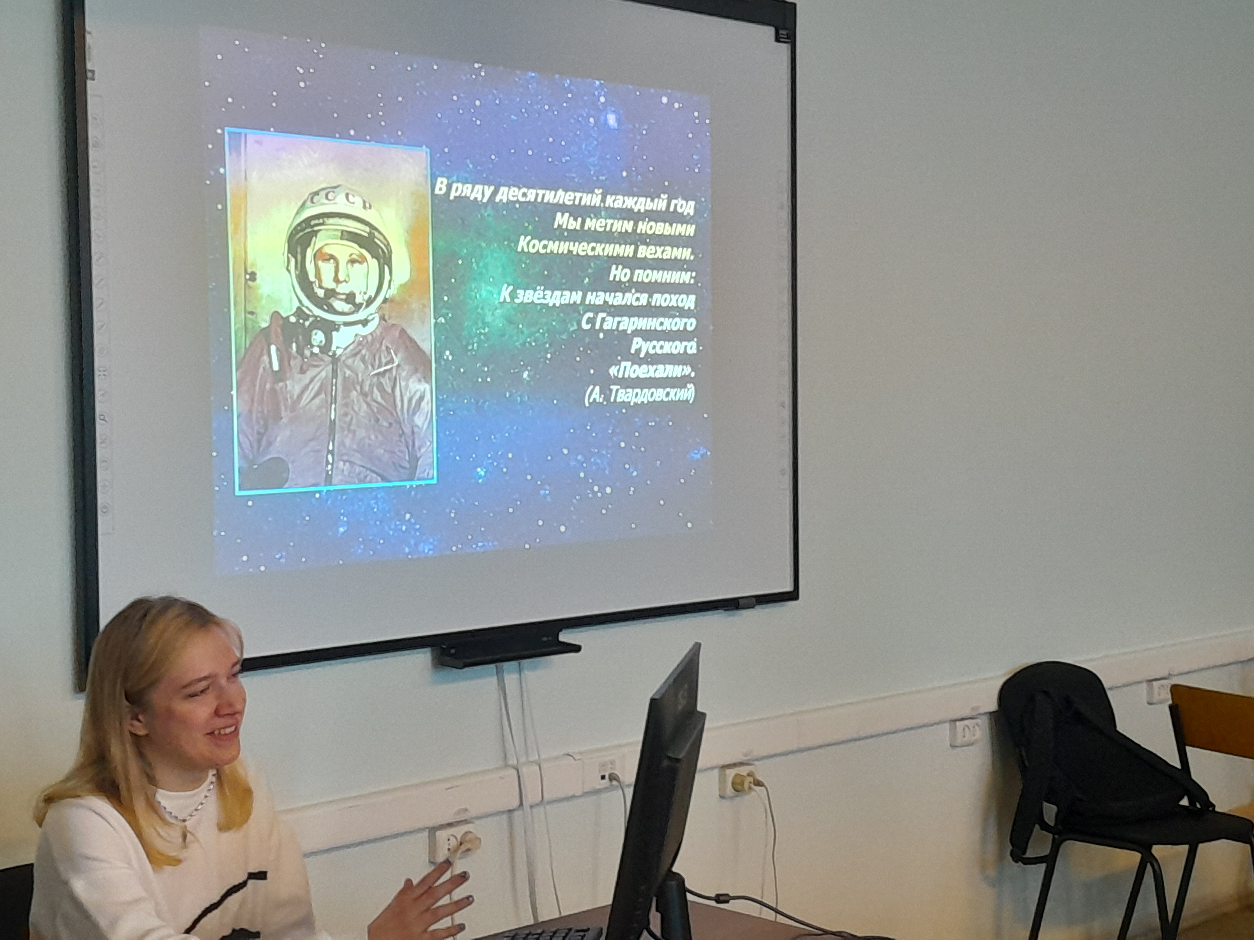 Студенты 121 группы под руководством куратора Светланы Голубевой организовали интеллектуальный квиз «Навстречу к звёздам». Игра позволила ребятам в неформальной и весёлой обстановке расширить свои знания о космическом пути нашей страны.