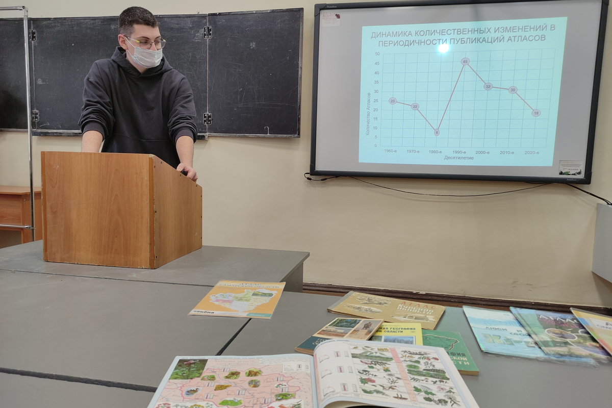 Научная программа конференции охватила широкий спектр направлений — от климатических изменений до демографических процессов. Заведующая кафедрой экономической и социальной географии, доцент Анна Вячеславовна Затонская совместно со студентом П.А. Покрашенко представила исследование «Неравномерность картографической обеспеченности субъектов РФ: количественный и пространственный анализ (на примере тематических атласов)». В своем выступлении Анна Вячеславовна акцентировала внимание на существующем дисбалансе в картографическом изучении регионов страны, показав количественные оценки этого разрыва. Выступление сопровождалось показом коллекции атласов регионов России в ретроспективе, а сам доклад вызвал оживленную дискуссию о необходимости унификации подходов к созданию картографических материалов для каждого региона страны.