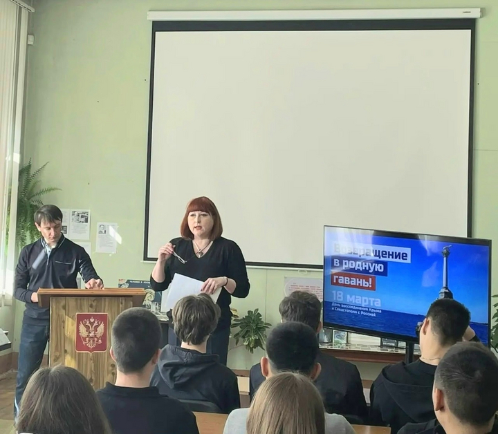 18 марта 2026 года, в День годовщины воссоединения Крыма с Россией, в геологическом колледже СГУ, продолжая долголетнее сотрудничество в области патриотического воспитания подрастающего поколения, старший научный сотрудник «Музея-усадьбы Н.Г. Чернышевского» А.Ю. Варфоломеев провел со студентами групп 2162, 2132, 1211, 1171, 2151 и 2231 лекцию «Севастопольские рассказы. Л.Н. Толстой», на которой также присутствовали педагоги колледжа: Т.В. Назарова, Н.В. Попова, О.А. Богомолова и Н.В. Садомова.