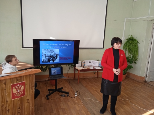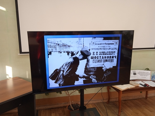 Минутой молчания студенты почтили дань памяти и уважения жителям блокадного Ленинграда. В ходе встречи обучающимся было рассказано о творчестве Д.Шостаковича, о том, как зарождалась грандиозная музыкальная симфоническая поэма. 9 августа 1942 года в Большом зале филармонии прошел концерт симфонического оркестра под руководством дирижера К. И. Элиасберга, где впервые в Ленинграде прозвучала симфония №7 «Ленинградская» Д. Шостаковича.