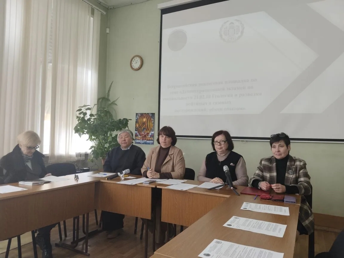 Опытом подготовки к экзамену в геологическом колледже поделились заведующий нефтяным отделением Людмила Станиславовна Громова и преподаватель высшей категории Светлана Викторовна Калачева, рассказав о системной подготовке студентов, организации внутренней экспертизы и проблемах, требующих внимания профессионального сообщества.