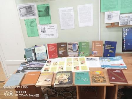 Ко Дню геолога в библиотеке колледжа подготовлена книжно-иллюстративная выставка «Путешествие по страницам геологической науки!». На ней представлены история Дня геолога, книги по специальности 21.02.10 Геология нефтяных и газовых месторождений, журналы «Отечественная геология», «Геология нефти и газа», стихи. На выставке также представлена краеведческая литература по геологии и географии г.Саратова и Саратовской области, которая повествует  нам об истории геологии в г. Саратове и Саратовской области, газовой и нефтедобывающей промышленности, выделяя в качестве известного Елшанского (Елшано-Курдюмского) месторождения природного газа. Оно расположено на террритории Ленинского района г. Саратова, Саратовского и Татищевского районов области. В 2026 году ему исполняется 85 лет со дня открытия.
